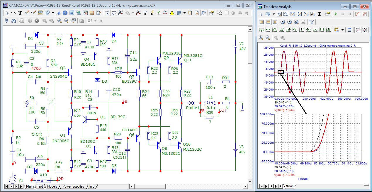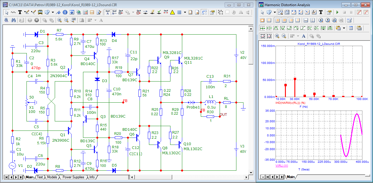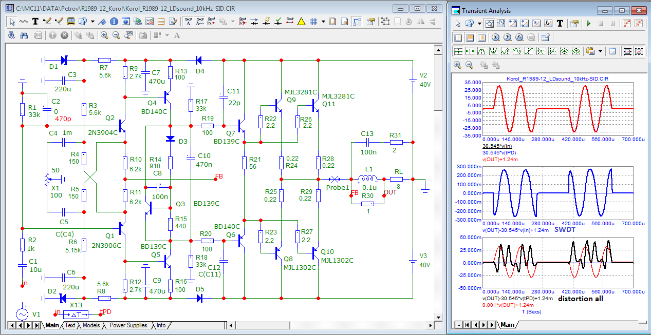 такое ощущение что г-н Петров у нас в гадалки подался, "искажения приворота","искажения отворота", "искажения снятия венца безбрачия" . помойный усилитель, позор схемотехники за авторством товарищя Короля- немедленно объявлен "идеальным" , нет искажений приворота и нет "коммутационных искажений", однако выше я выложил спектр сего величайшего достижения схемотехники. и что же позвольте узнать так в него мощно срёт? "неуловимые искажения" некие? да нет. всё просто. данный чудо усилитель сильно приближен по некоторым параметрам к простому медному кабелю. ну то есть усиления в петле- почти нет. но к сожалению,