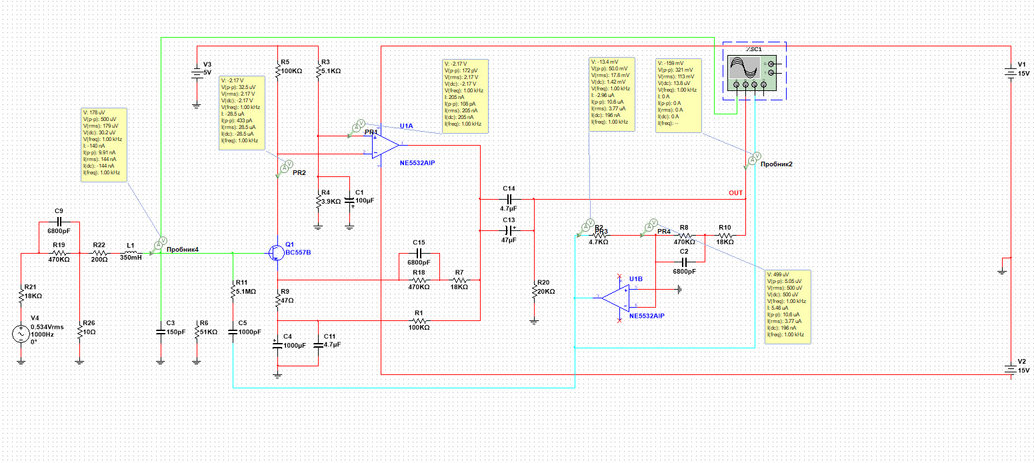 Главный измерительный прибор на схеме выглядит как точка "out" на выходе. ЗЫ пометки на схеме мои для одного упоротого любителя мс.