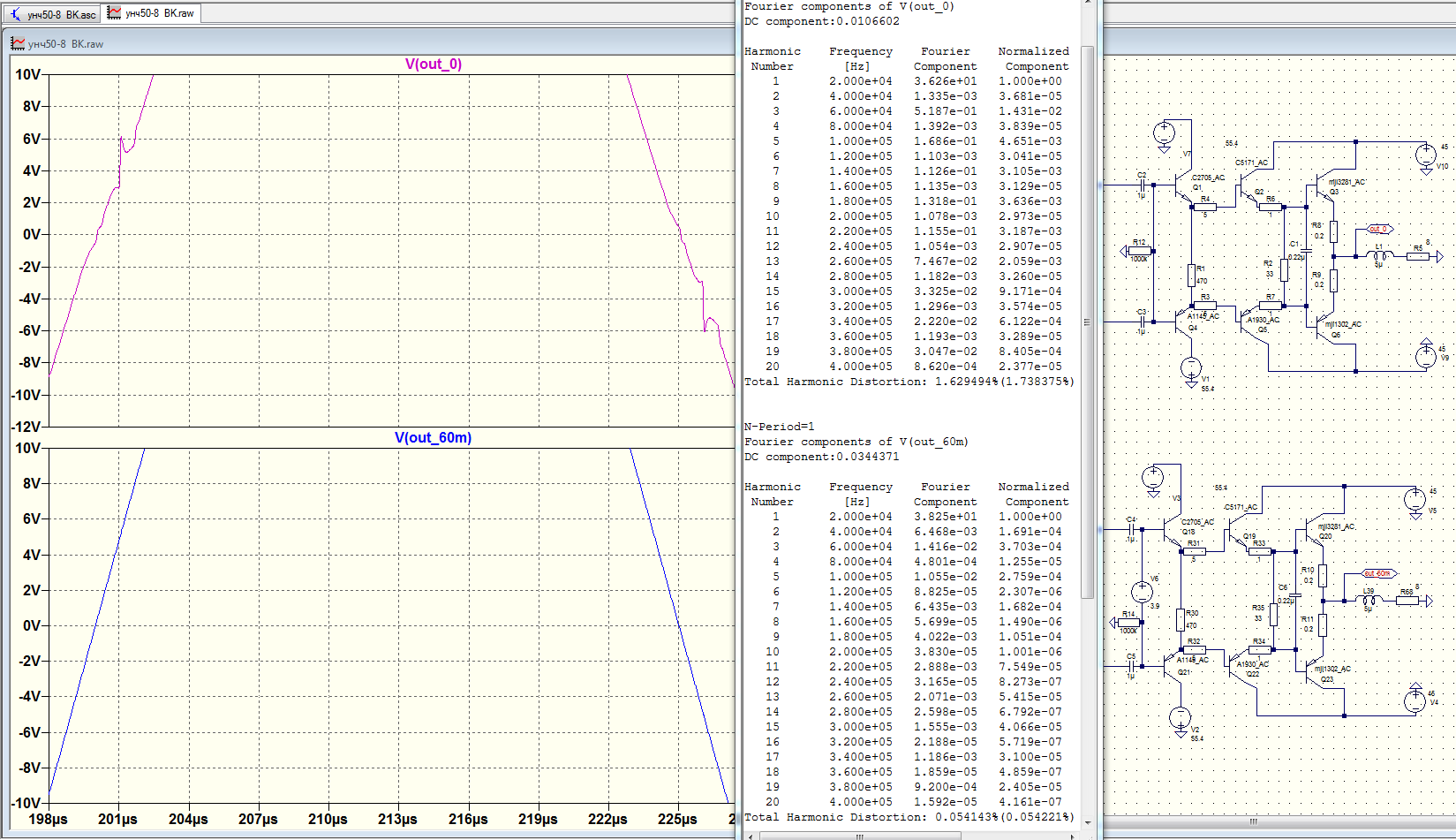 ну и понятно, замеры велись от источника напряжения, в железе у меня получились искажения тройки 0.15%, потому что там вк работает от источника тока.