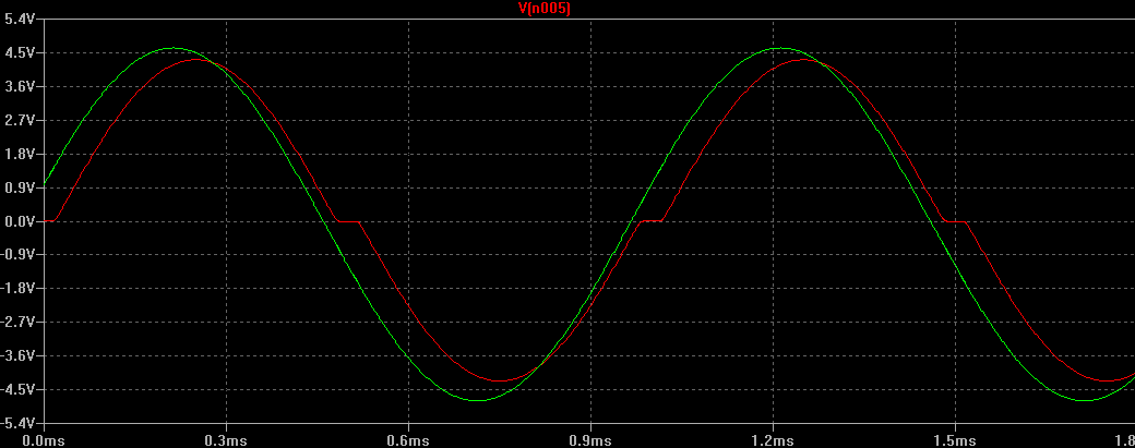 Ступеньку он создаёт примерно в режиме класса Б. У нас АБ, и там ступеньки уже нет.
