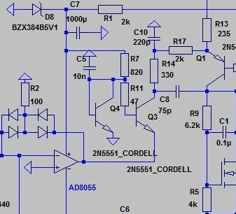 одна схема на полном сигнале в нагрузке добегает до 400 -500 кГц, меандр еще похож на меандр , а другая сдувается на 50 кГц, но меня убеждают, что она быстрее и у нее все 80 в на мкс, Не-а, не убеждал никто, что медленная быстрее. жду продолжения сюжета, типа : "Эх, молодежь-молодежь, ничего...