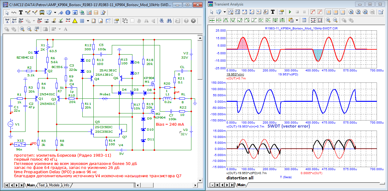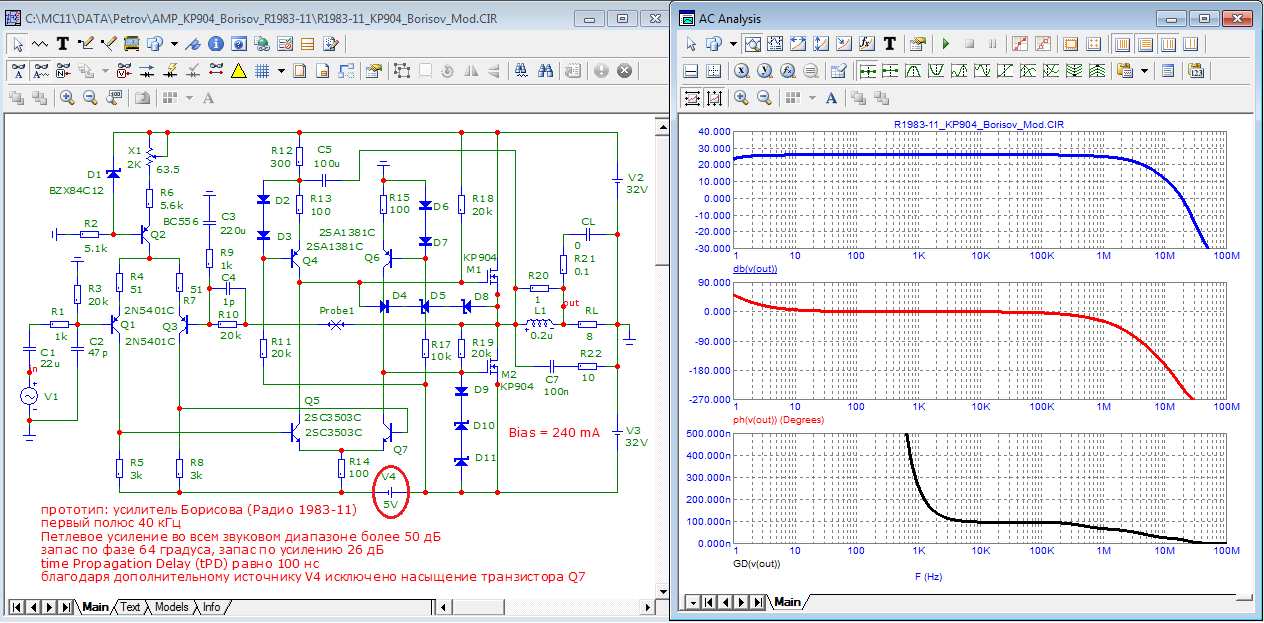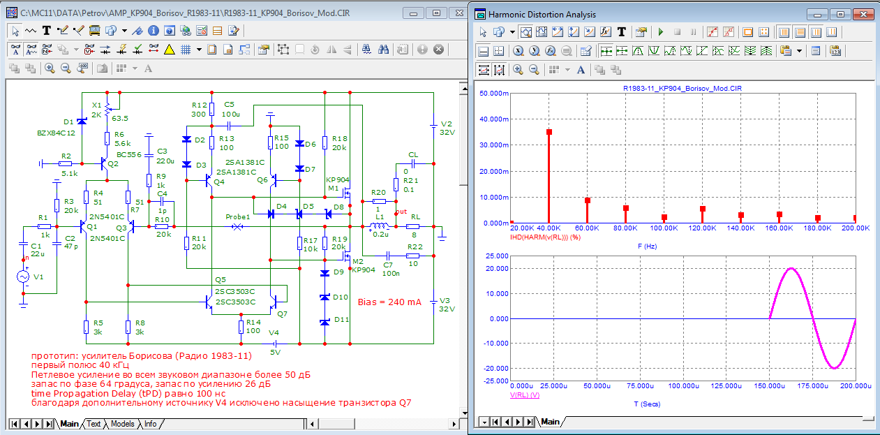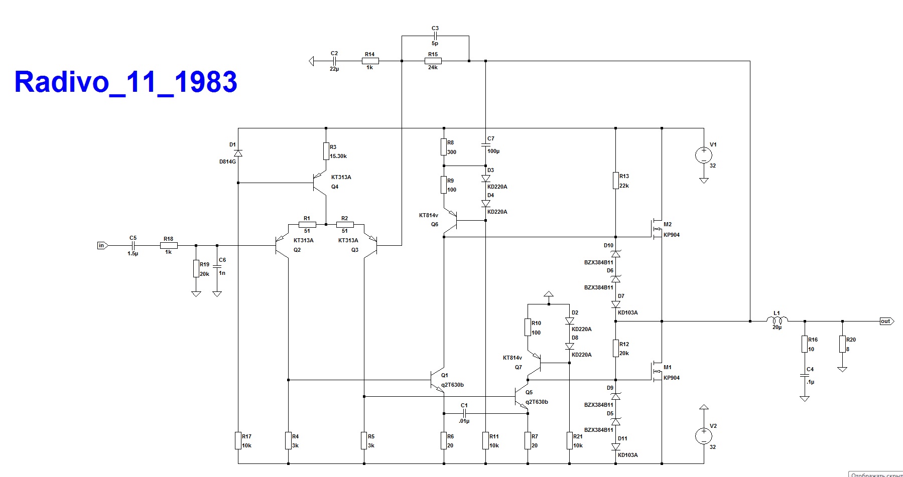 и чем же LTspise круче микрокапа? можем посоревноваться на конкретной модели усилителя. Ко мне на днях обратился друг и попросил проанализировать усилитель из Радио 1983-11. Представьте пожалуйста всесторонний анализ этой схемы с помощью крутого LTspice, используя его возможности по полной