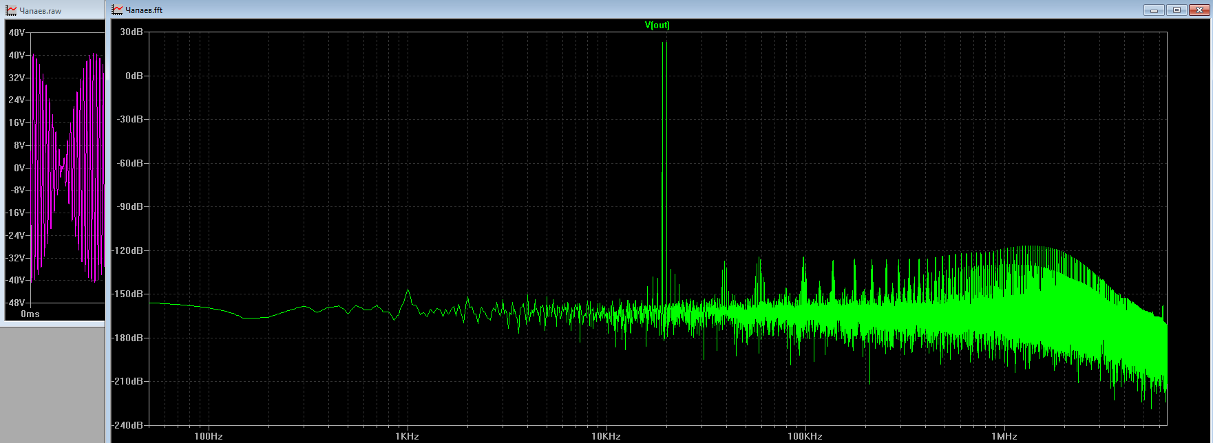 А.П.Бордодынов тестирует новый симулятор. - Qspice, в нём заложены ещё более мощные возможности. В частности, добавлена способность учитывать рассеиваемую элементом мгновенную мощность, влияющую на мгновенный нагрев, меняющий параметры транзистора в такт с усиливаемым сигналом (так называемые тепловые искажения).
