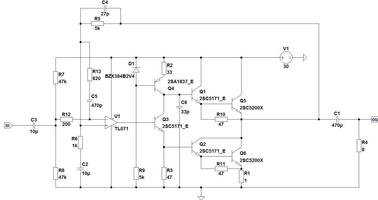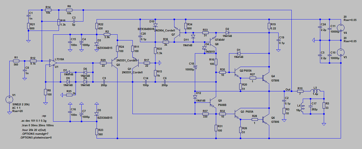 При таком питании хватает и 815/814, просто изначально я подумывал усилитель для наушников, но жизнь повернулась так что наушники я ещё полгода-год просто одеть не смогу.)По мне, схемка приятная во всех отношениях, жаль, питание куриное, а выходные транзисторы- пародия на выходные. Но ООС животворящая на то и существует, шоб das Maerchen сделать былью.