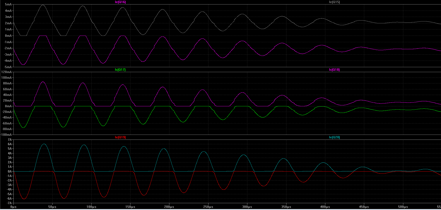 С латералами ясно, там внутреннее конское. А ставить туда биполяры и повторять весь скорбный путь повторяющих схему Лайкова нет желания, примерно ясно, на что можно нарваться. Без общей ООС картина ограничения точно такая, как у автора, красиво скругленные верхушки синусоиды , приятный звук ограниченного сигнала. ООС возвращает все в привычное стойло.