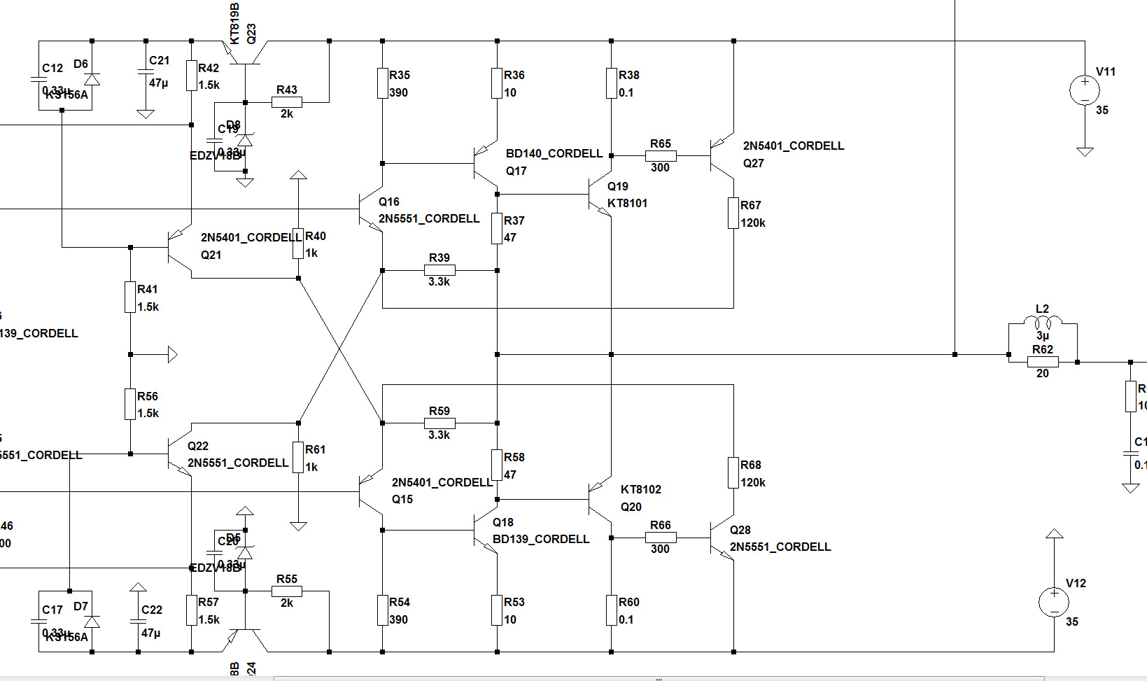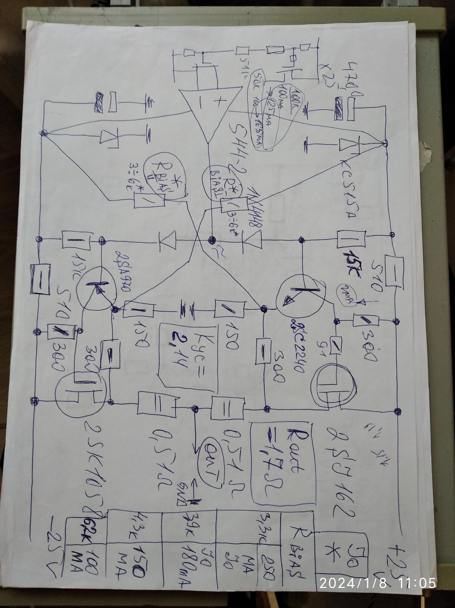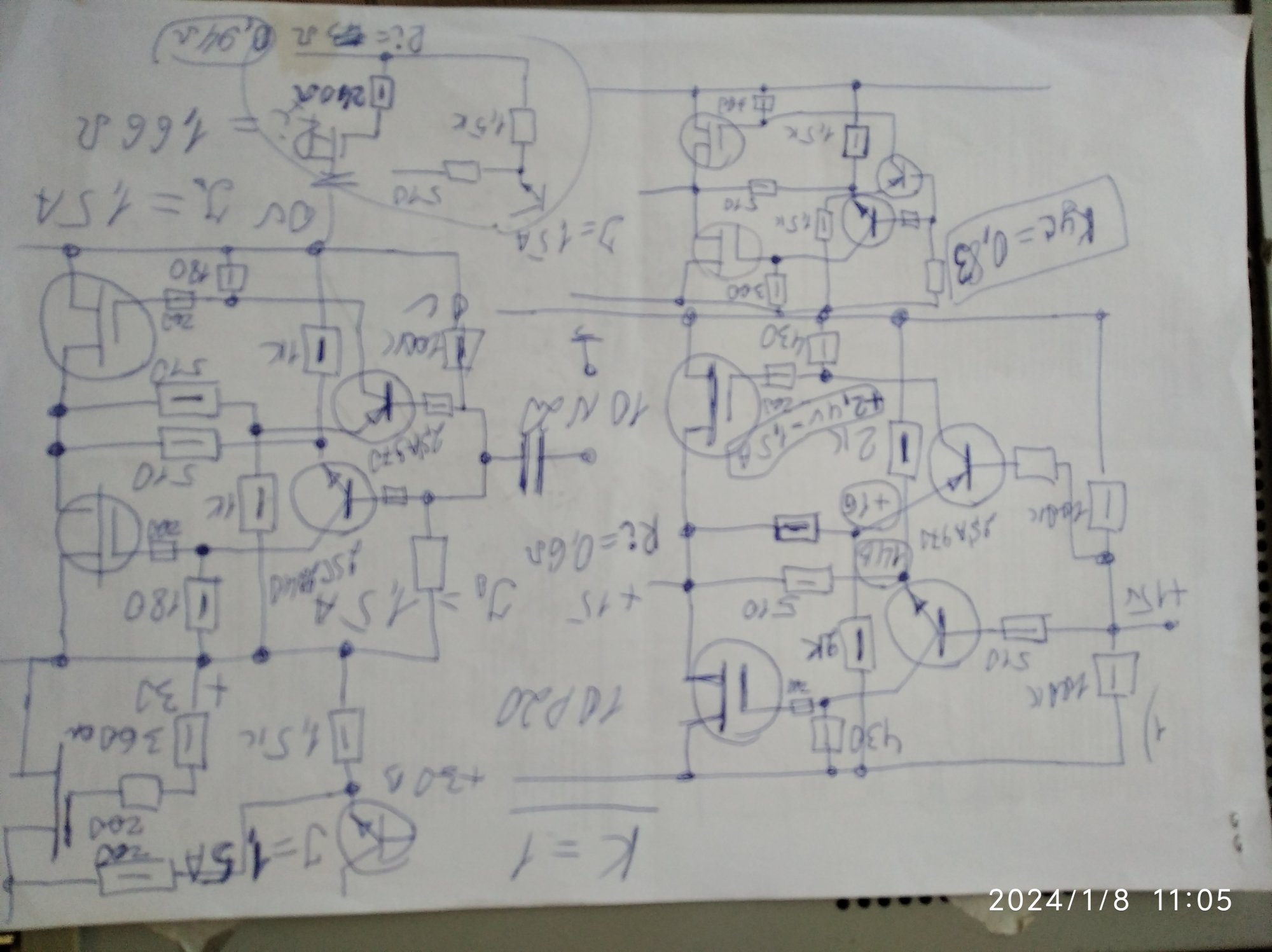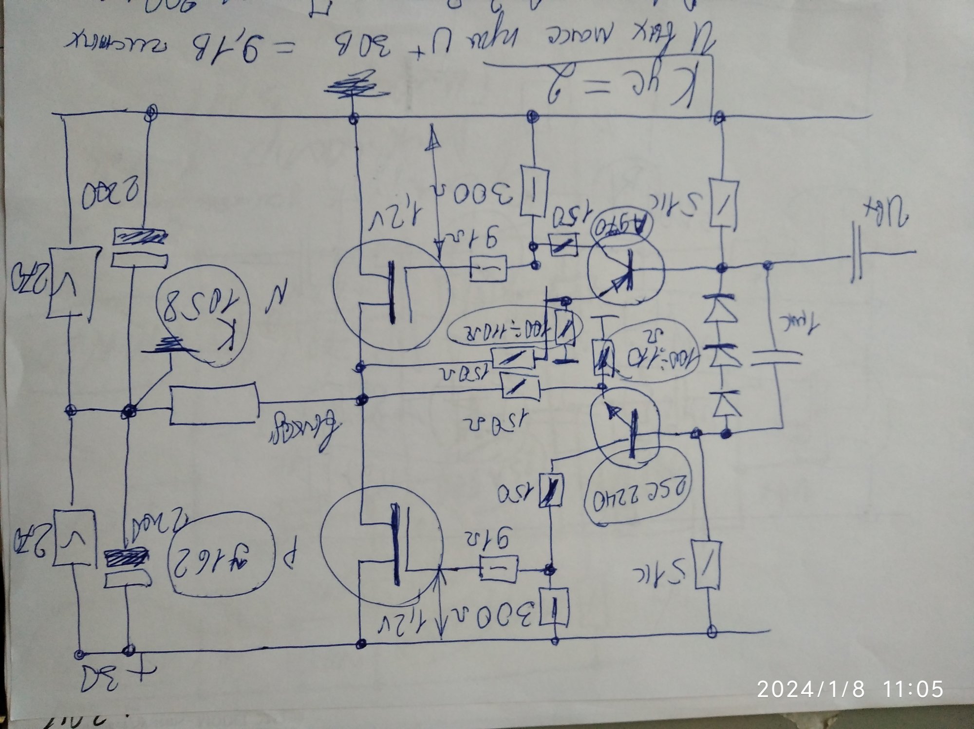 Но затем пошел дальше,понял что любой оппозитный каскад будь то ОЭ, или ОК, давит динамику и плодит искажения, из за коллизии токов внутри последовательного канала из двух активных элементов с независимым управлением, и надо их разделять по плечам вплоть до выхода.