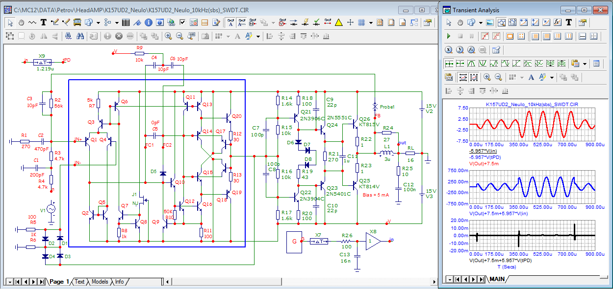Хуан Пабло, вам не нравится Ультралинейный усилитель Sokol-3 с тремя нулями после запятой в Кг. Ну хорошо, тогда возьмем еще более ультралинейный усилитель с 5-ю нулями после запятой и посмотрим как он работает на сигналах напоминающих звуковые.