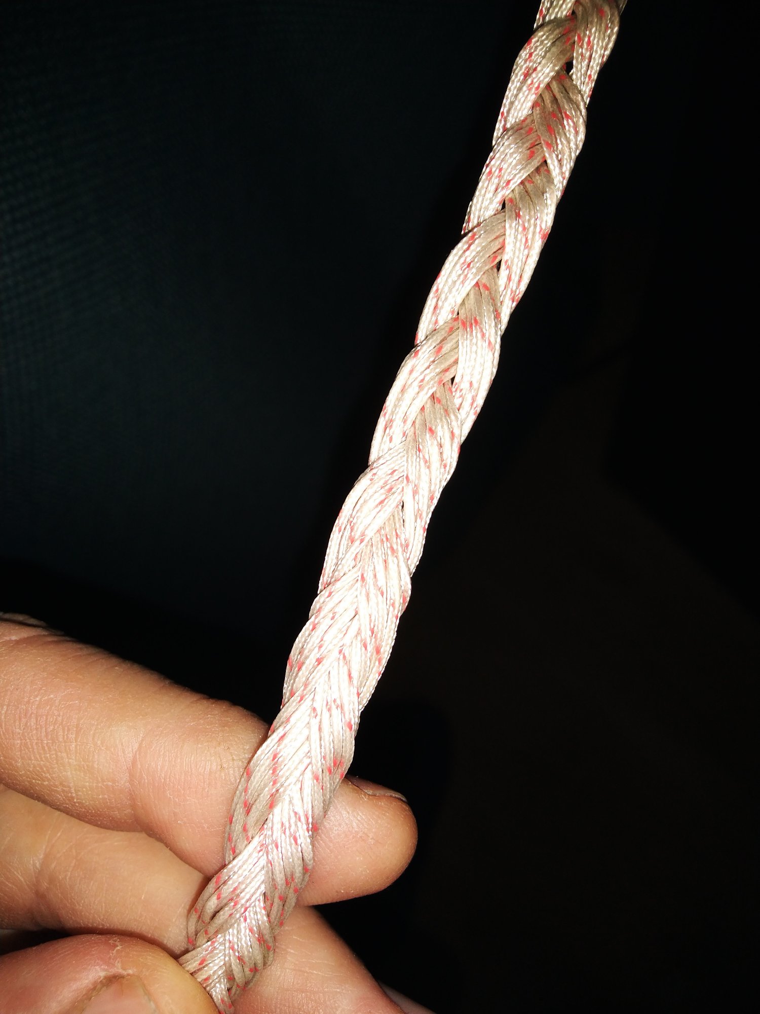 Сплел его в 24 жилы из какого-то старого советского провода, многожильного в шёлковой изоляции, очень мягкого. Не знаю, как называется, может, кто опознает?