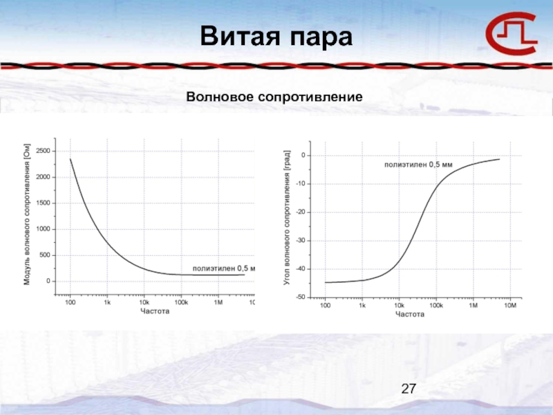 Кабели на витых парах на звуковых частотах, то есть при передаче телефонных сигналов, имеют сопротивление около 600 Ом, по мере увеличения частоты оно быстро падает и на частотах свыше 1 МГц вплоть до верхней граничной частоты конкретного кабеля не должно отличаться от 100 Ом более чем на + 15%.​