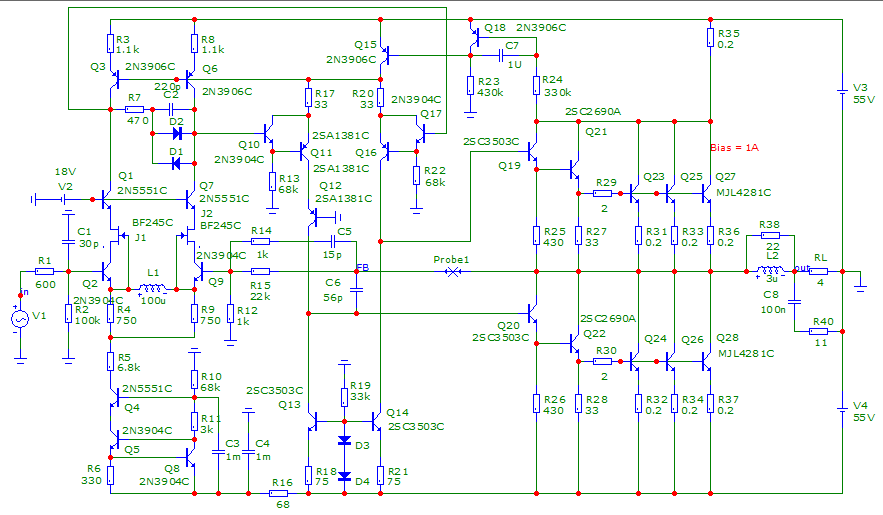 Как видите все модели корделовские кроме предвыходных транзисторов, взял из модели какого то сагиттариуса