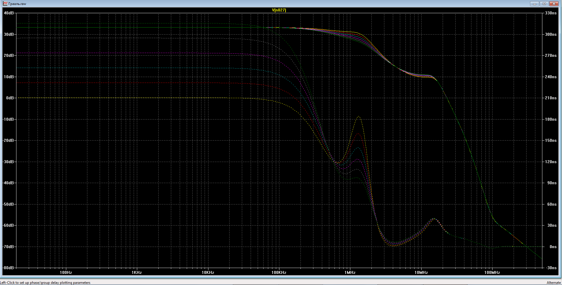 Приведя устройство под названием Грааль в рабочее состояние, я задал степирование конденсатора параллельного резистору ООС, который изначально 15пФ, степировал от 10 до 15пФ с шагом в единицу. И что у нас выходит?