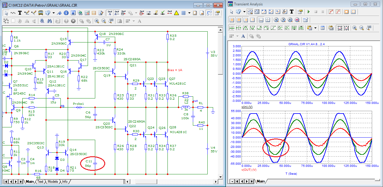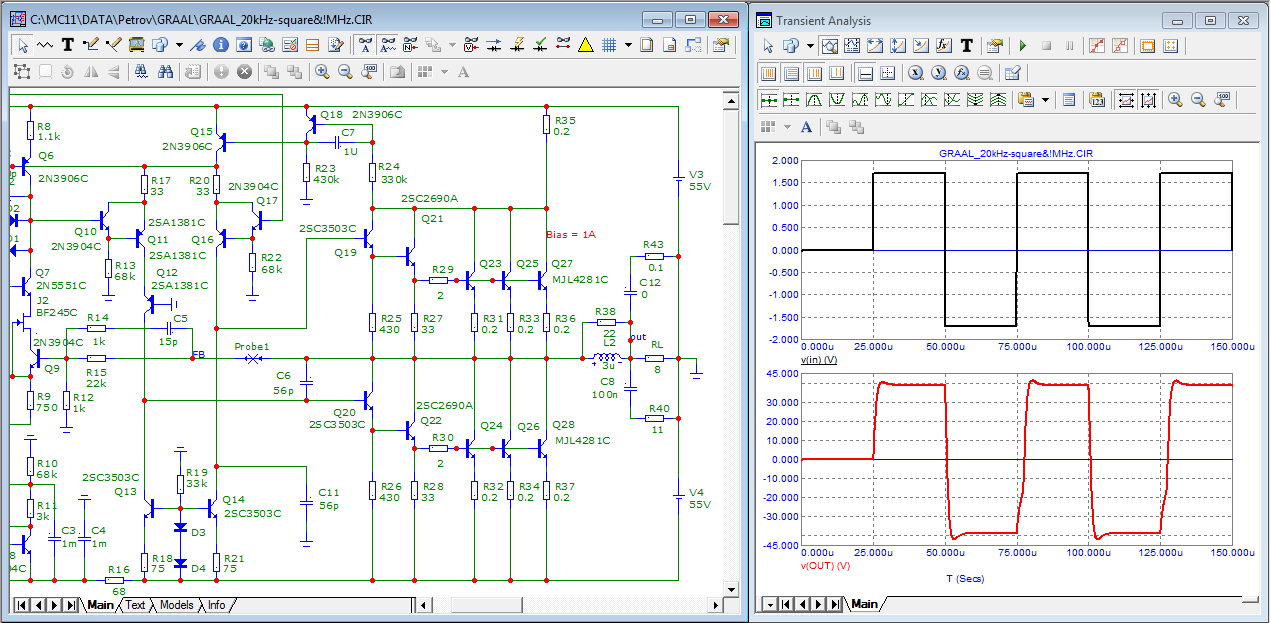 параметры моделей выходных транзисторов от Корделла даже лучше чем по паспорту. Может надо было идеальные поставить?