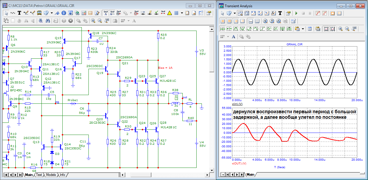 Как видите все модели корделовские кроме предвыходных транзисторов, взял из модели какого то сагиттариуса