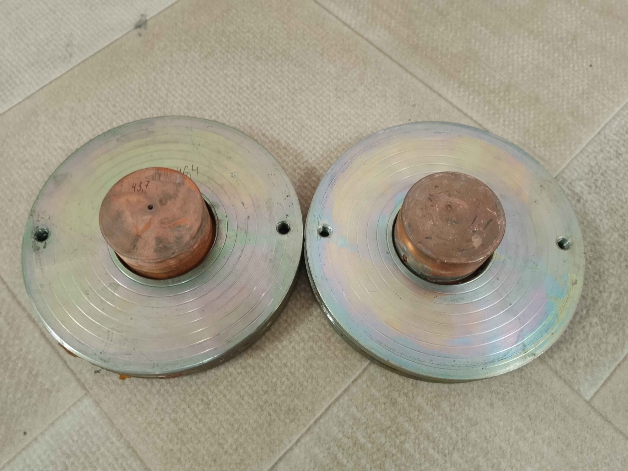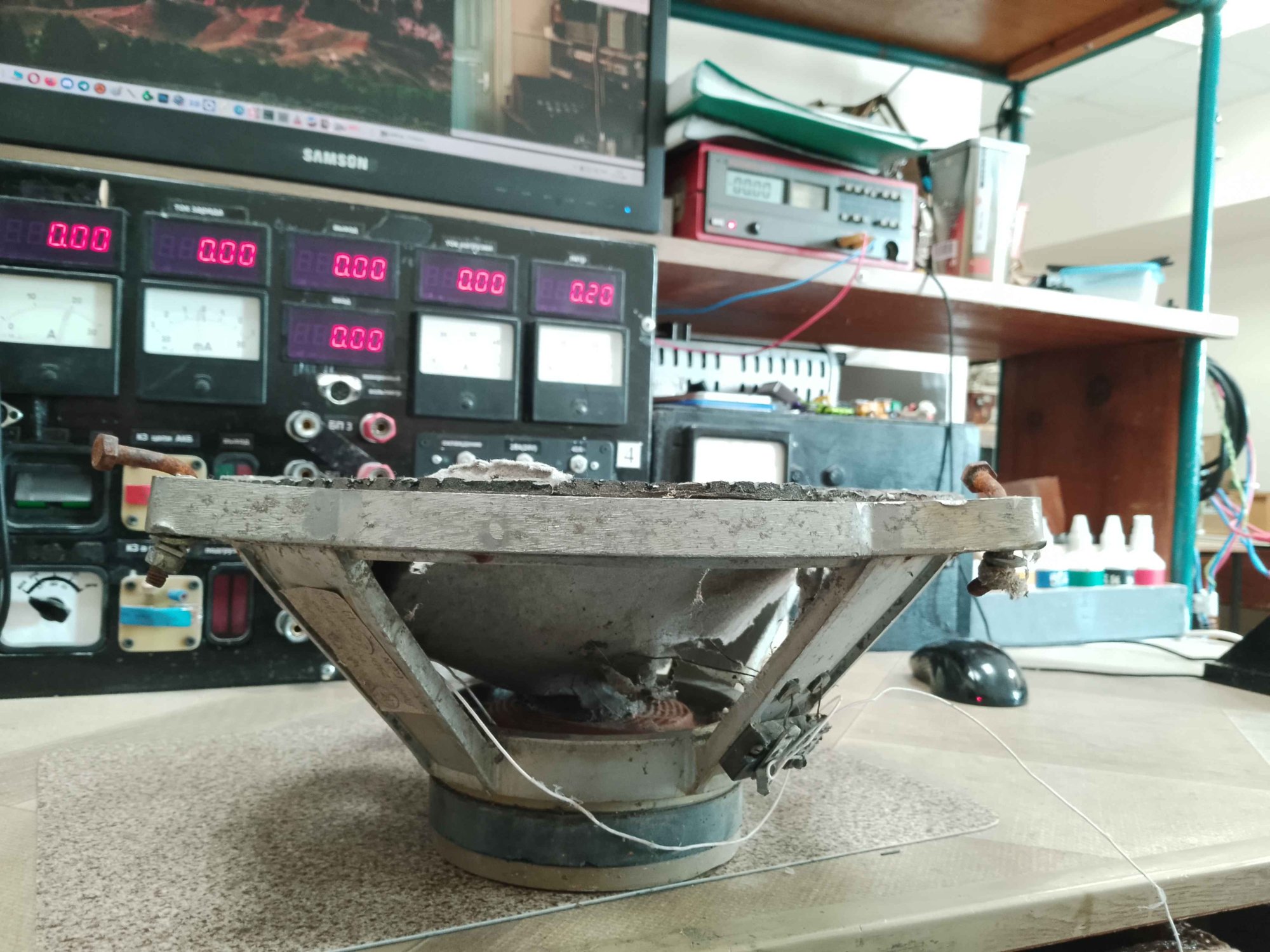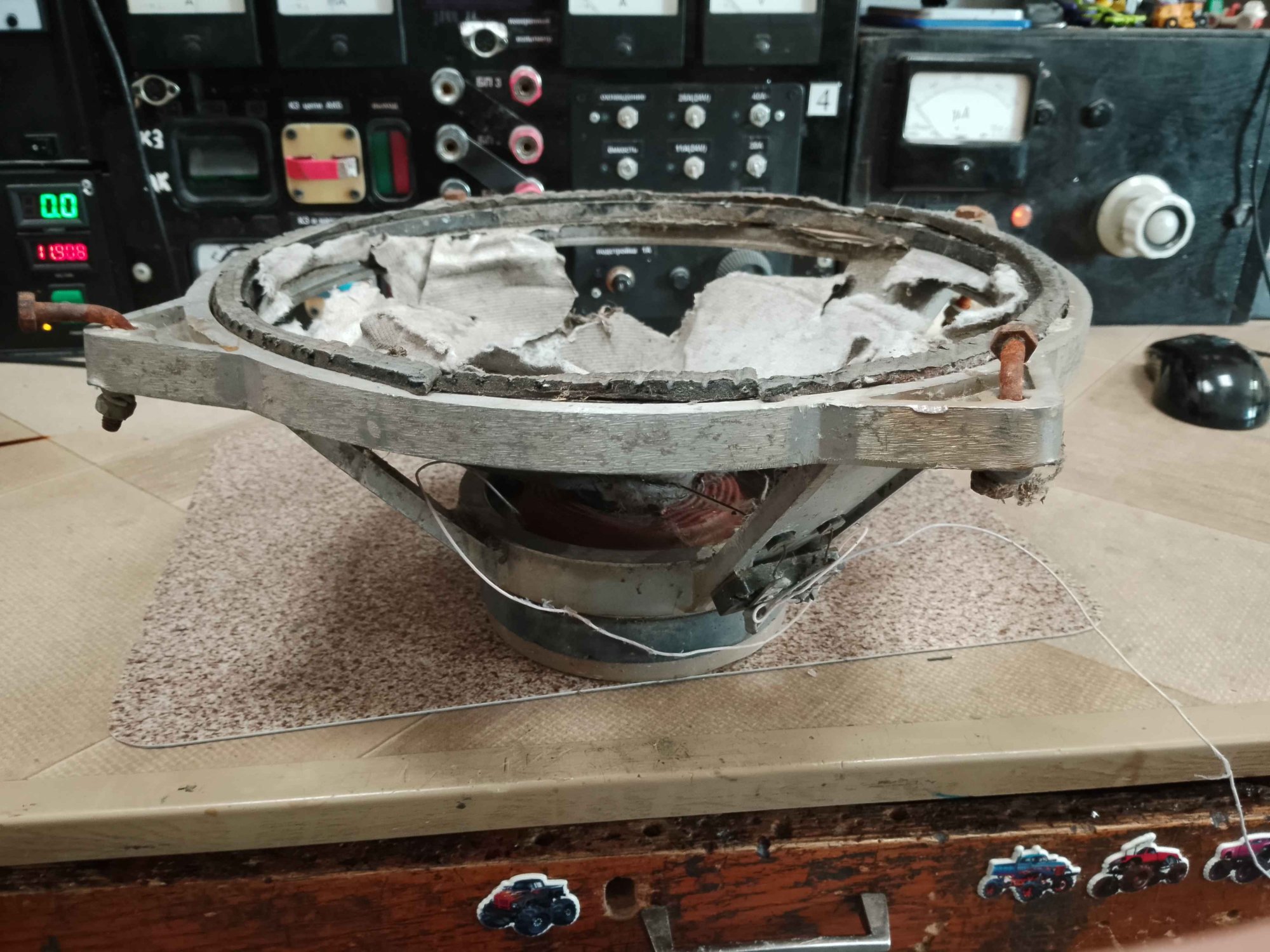 С динамиками по цене лома всё оказалось непросто - вместо того чтобы открутить болты М6 и снять динамики, их похоже поддевали ломом и вырывали из колонок. Болты с гайками заржавевшие навсегда остались в ушах диффузородержателей, отрезал болгаркой. Все МС заклинены, керны сдвинуты. От подвижек - одни катушки зажатые в зазоре мс и цш. Такие дела.