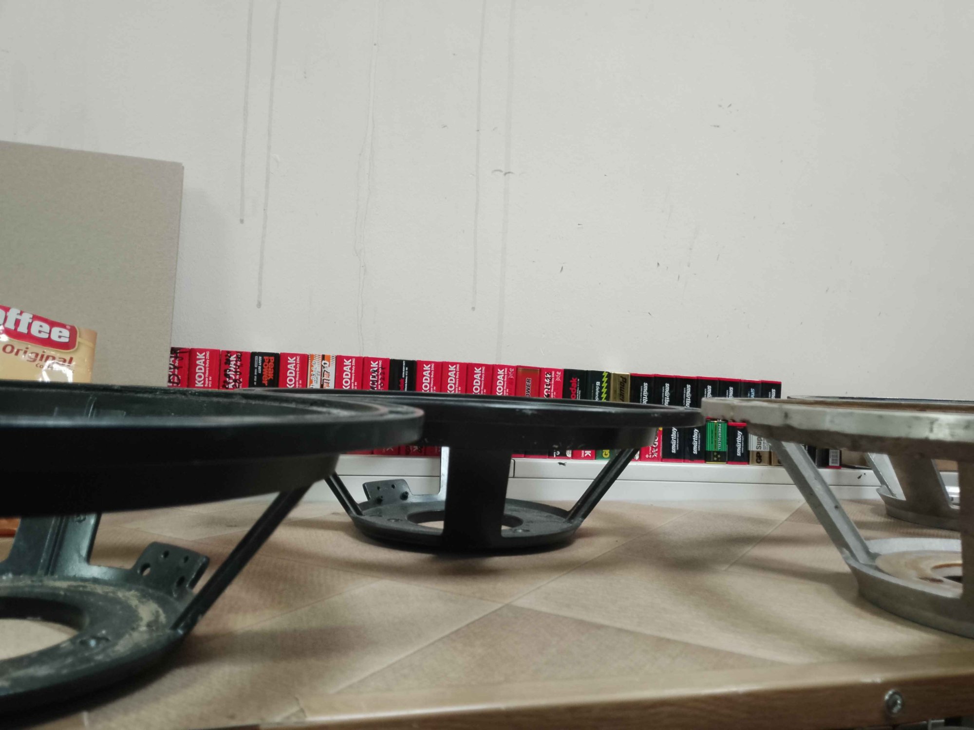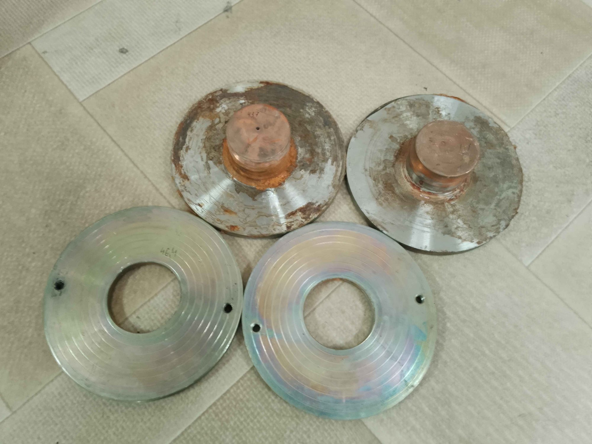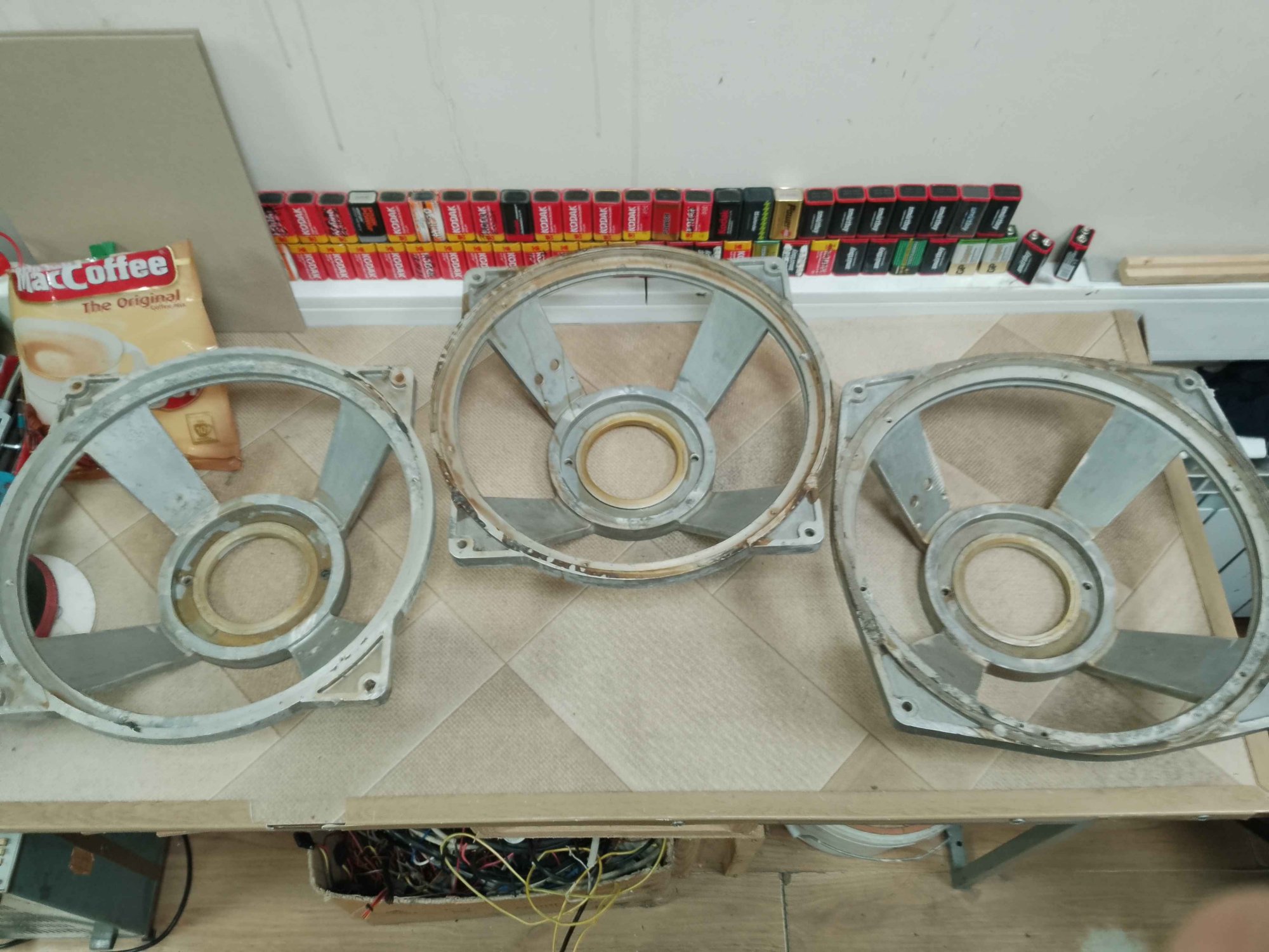 С динамиками по цене лома всё оказалось непросто - вместо того чтобы открутить болты М6 и снять динамики, их похоже поддевали ломом и вырывали из колонок. Болты с гайками заржавевшие навсегда остались в ушах диффузородержателей, отрезал болгаркой. Все МС заклинены, керны сдвинуты. От подвижек - одни катушки зажатые в зазоре мс и цш. Такие дела.