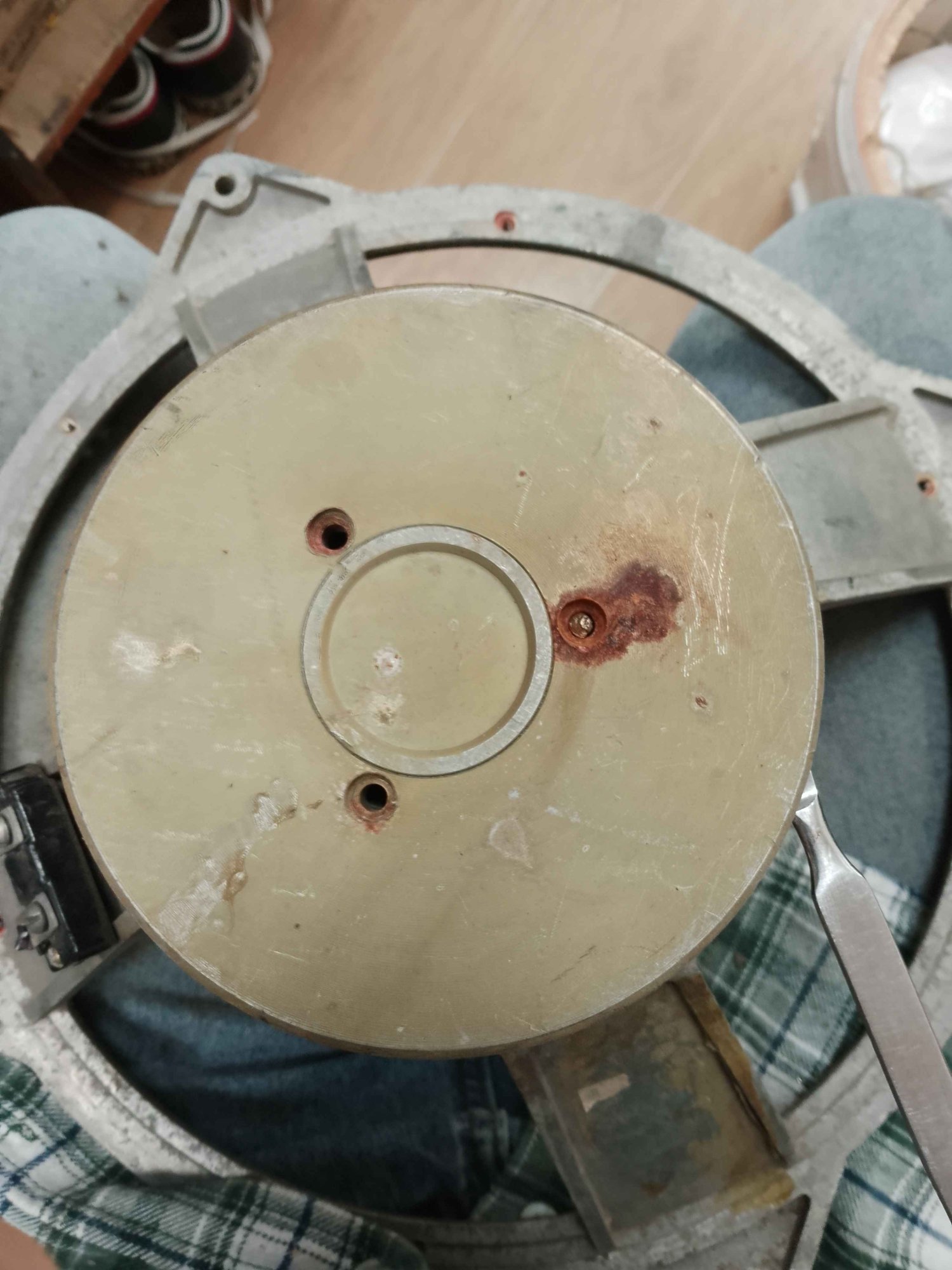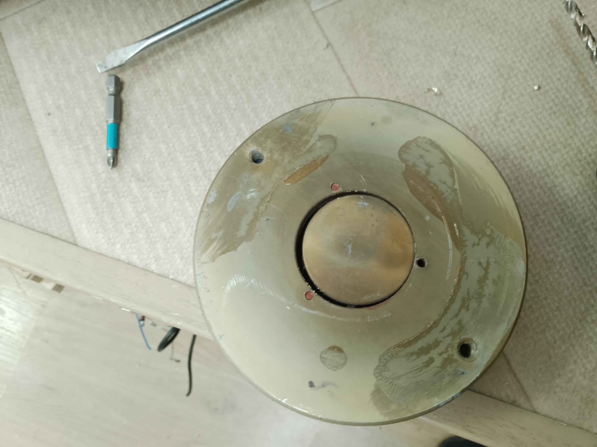 А это винт удерживавший фиксирующее диффузор кольцо, просверлил насквозь