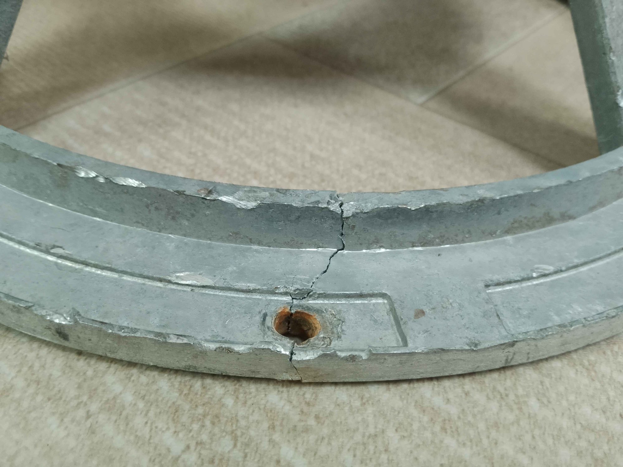 Трещина, сейчас ещё ничего выглядит, а была выгнута в месте слома и концы не сходились, кувалдой подрихтовал