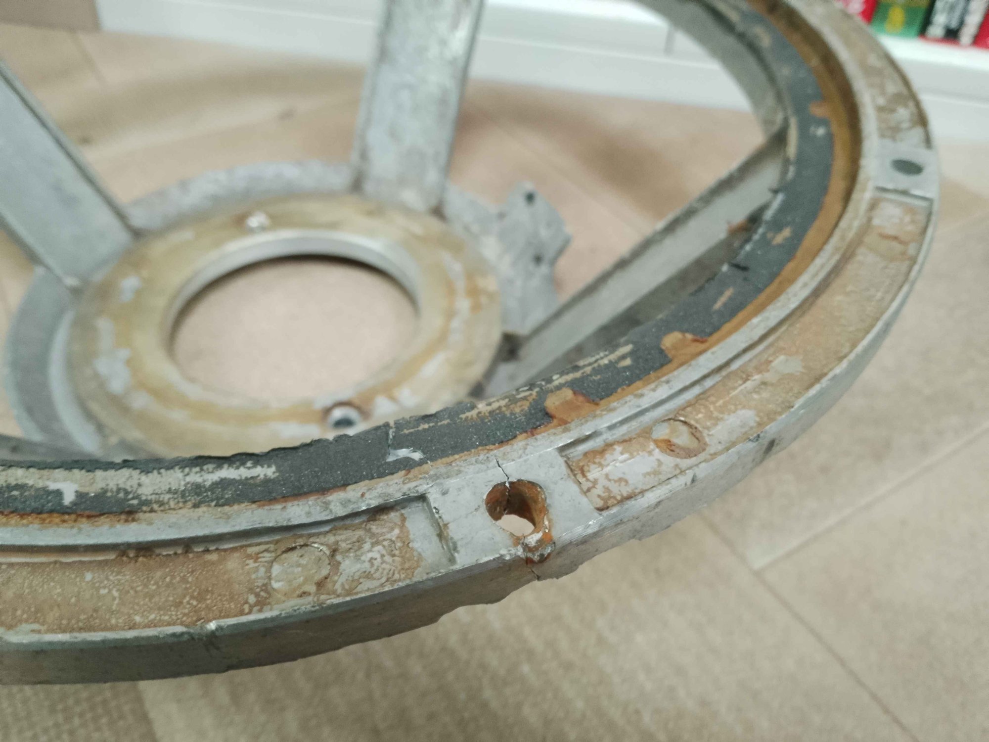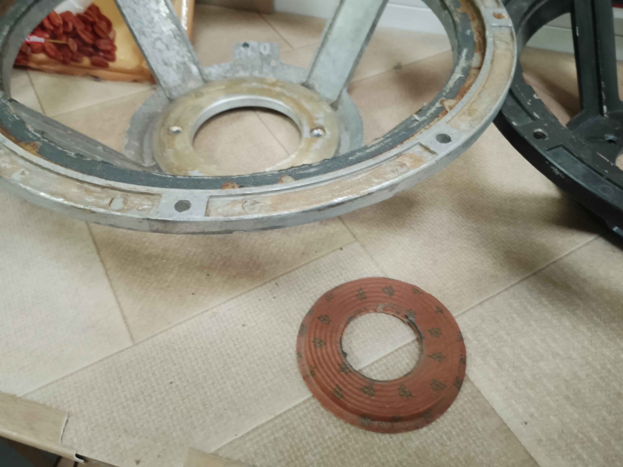 Запоротое кольцо, еслиб оно ровно к остатку на фланце подходило - может и приклеил бы как было, но там здоровенной прослойки не хватает миллиметра в 3, которая в труху была, потому скорее всего использовать не получится.