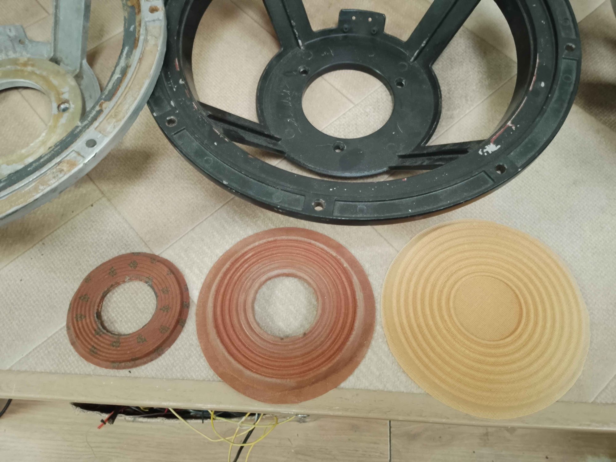 Тэкс. Нужна с широкими ушами и прямыми спицами с рёбрышками с внешней стороны корзины. Но тут такое дело, Диаметры, отверстия должны совпадать у всех трёх корзин. И одинаковость в парах нужна лишь в случае установки динамиков с внешней стороны корпуса. Если с внутренней, то и разницы нет. В любом случае я гляну.