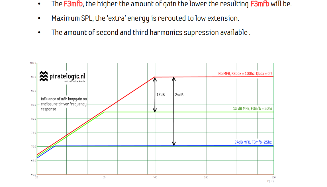 Если я правильно понял принцип работы этой системы, она расширяет АЧХ не за счёт того, что заставляет работать динамик там, где он физически не может, а просто прибирает уровень на остальных частотах, выравнивая АЧХ относительно желаемой нижней частоты. Т.е., если динамик может воспроизводить 30Гц с уровнем 80 дБ, то остальная АЧХ опускается до этого уровня.