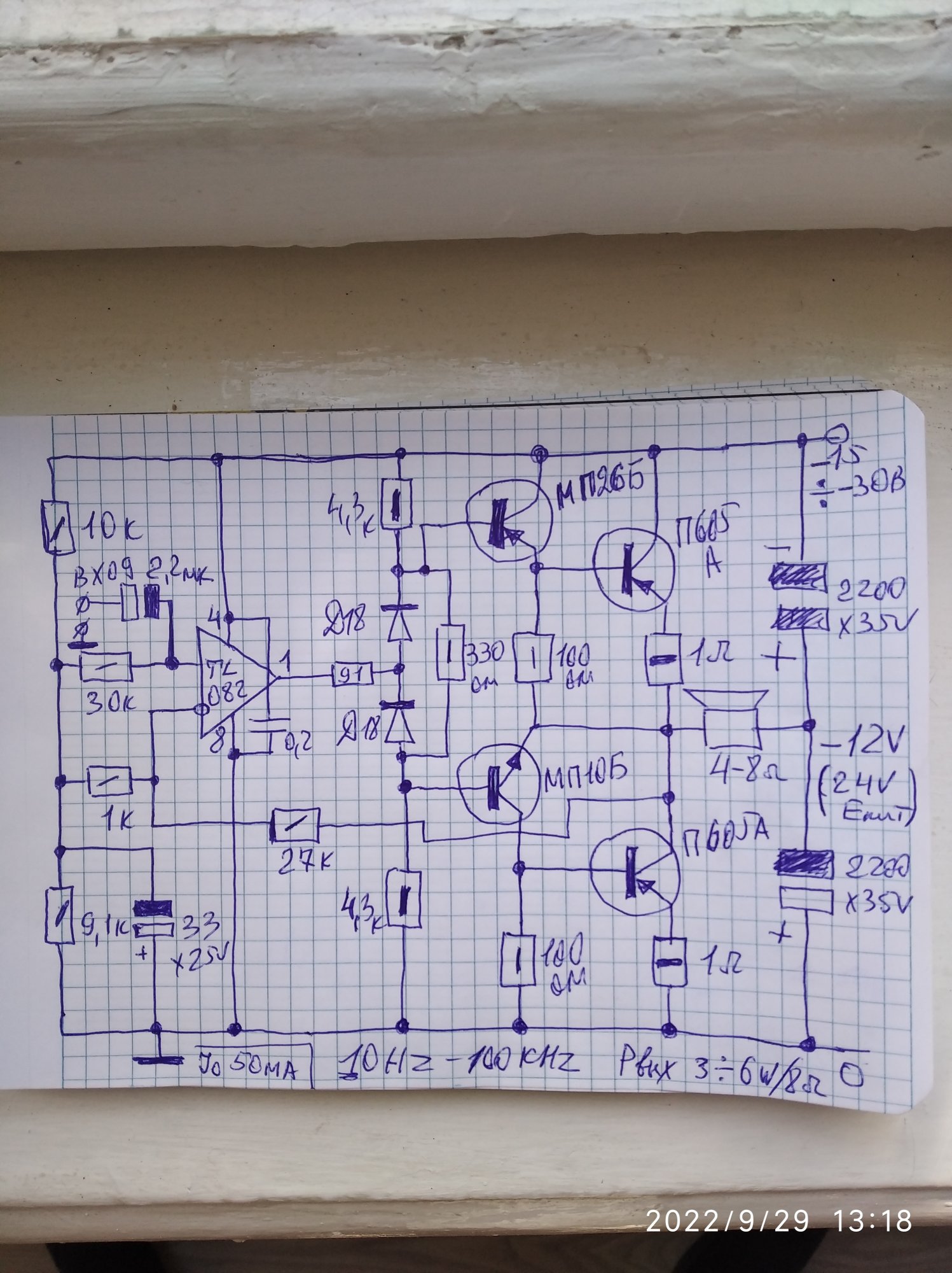А когда стал слушать, столкнулся с непоняткой, по приборам идеальный синус на токе покоя 50 ма, а звук песочит и бас поджатый, куцый.Дал ток 120 ма, сразу услышал нормальный звук. В итоге забросил тему 605 -х, куриный у них масштаб, игрушечный.В приемник портативный самое то.А колонки тянуть не годится.