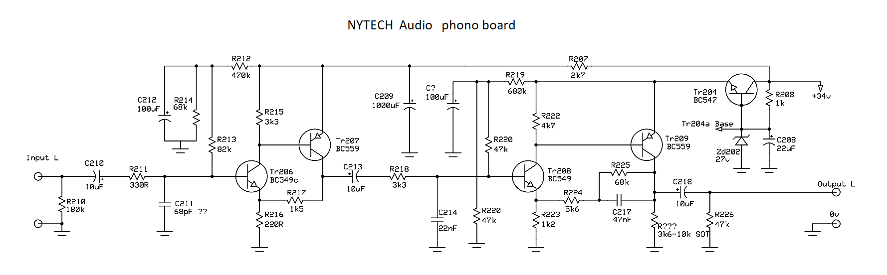 Да, срисовал с печатной платы. Те номиналы которые поставил были видны. В транзисторах, втором и третьем, могут быть варианты, но вряд ли.