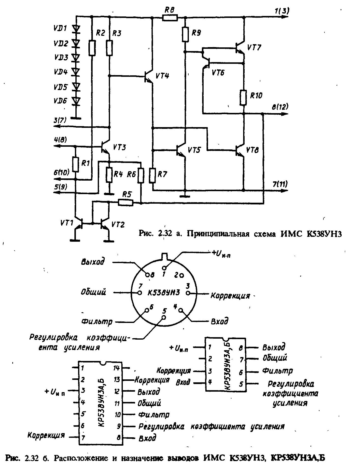 5-й вывод 538УН3 - вывод для коррекции усиления (R4 и R5 микросхемы задают усиление), подбором внешнего резистора между выводами 5 и 8 можно уменьшить усиление до нужного уровня
