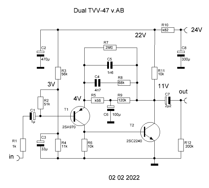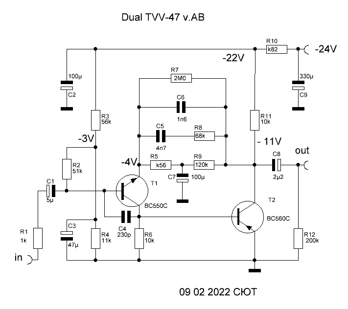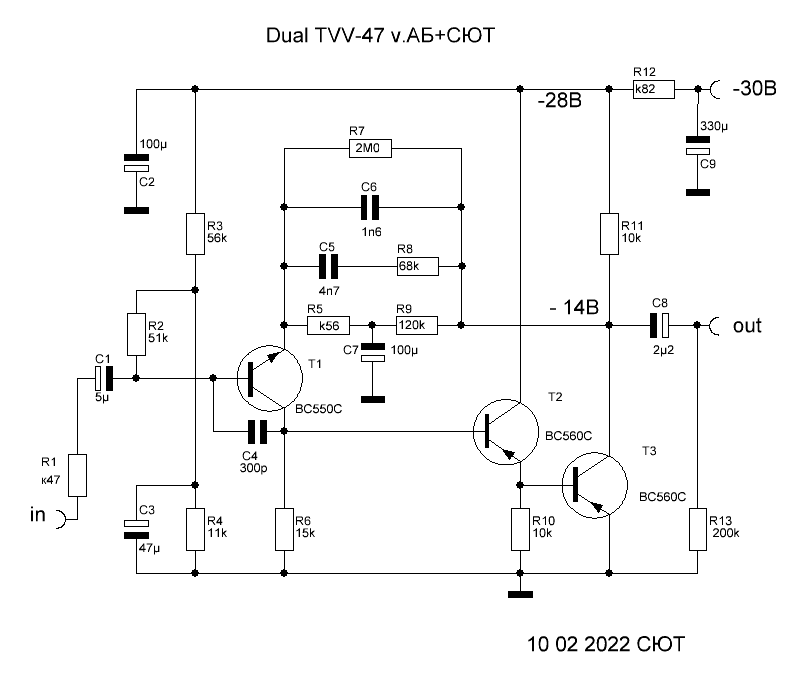 Но, есть нюанс. Єту схему товарищ Сухов героически скоммуниздил у Кенвуд, где она бьіла встроенной в интегральньій усилитель, межблочньій кабелей не требовала и бьіла нагружена на сотеннокилоомное входное сопротивление следующего каскада.