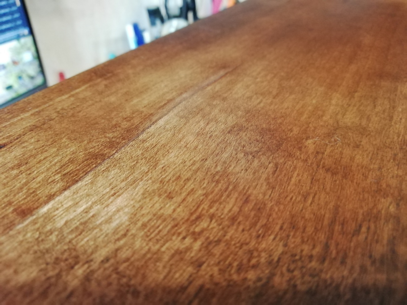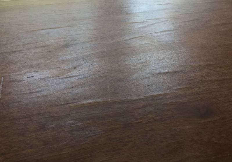 Масло для пропитки очень сильно увеличивает объём покрываемой древесины. Поэтому, пропитывать нужно только чуть-чуть увлажнив поверхность. Там, видимо, "от души" поливали маслом и древесные поры набрали объём и деформировались. У меня был такой трагичный случай. Сделал на заказ обеденный стол со столешницей из огромного берёзового капа, распиленного ленточкой на пластины толщиной 50мм. Всё было бы хорошо, но новый владелец спорол отсебятину - переборщил с пропиткой маслом и вылил почти всю 0,5л бутылку льняного масла в этот кап. Столешницу 1х1,5 метра, в 50мм толщиной, скрутило, как поросячий хвост. Потом всё переделывал. Добавлял в подстолье новые балки и ригели и выгибал струбцинами в обратную сторону. Слишком хорошо - тоже плохо.
