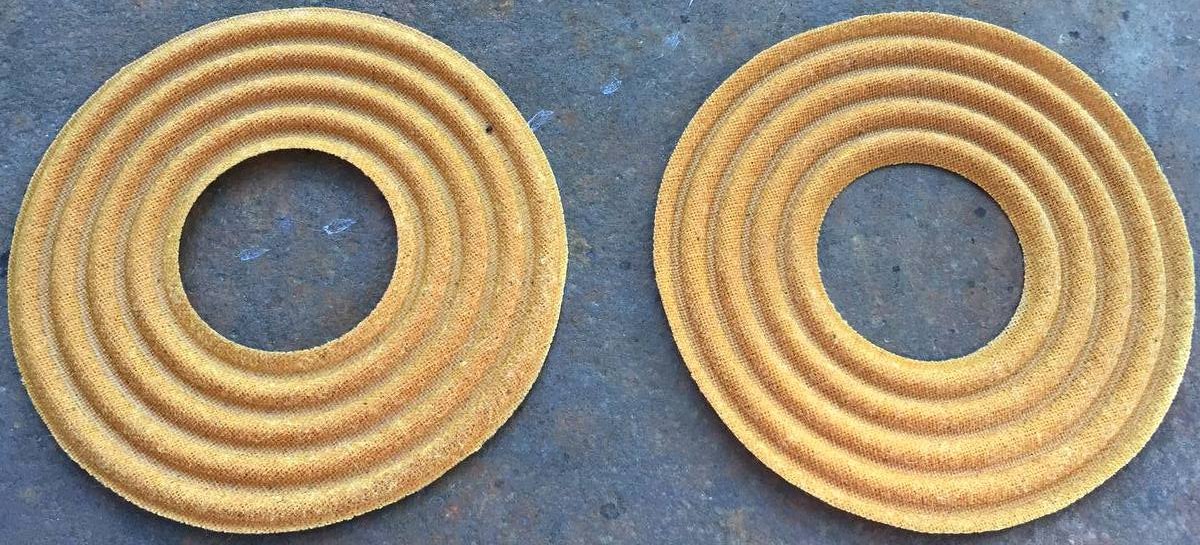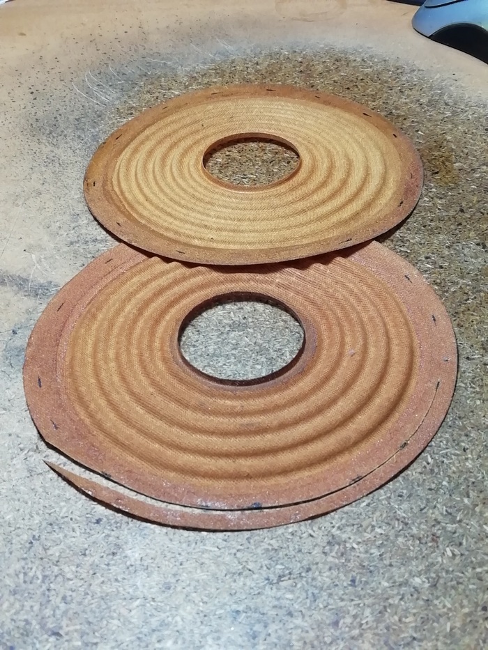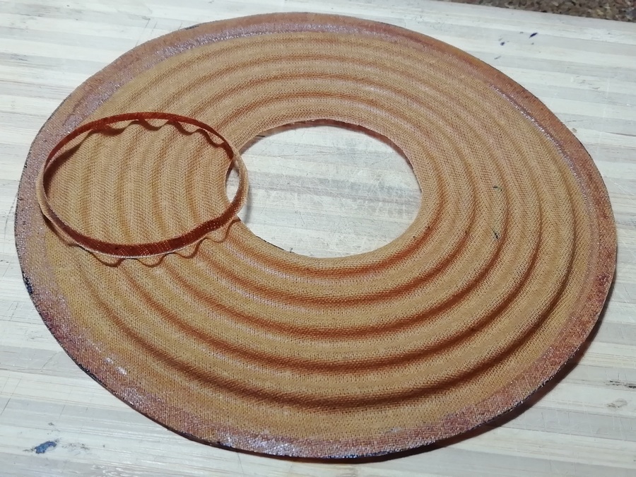 Эти шайбы очень жесткие. Они примерно одинаковой жесткости с теме, которые брал для 8" НЧ, у которого массы подвижки раза в 3 больше и тогда с уже чуть доработаных наждачкой шайб, резонанс вышел 45 Гц, пришлось еще работать. С той подвижкой которую применю сейчас резонанс выйдет под 100 Гц.