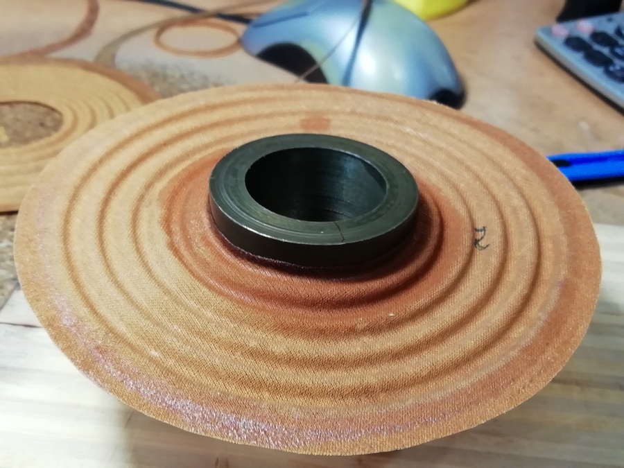 Фото тех шайб, что я привел выше были обрезаны со 145 мм по внешнему до 135 мм. 5 мм клея ушли.