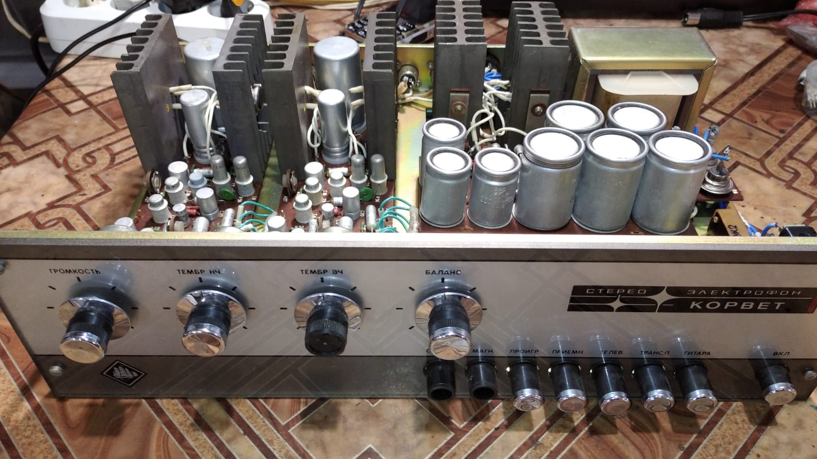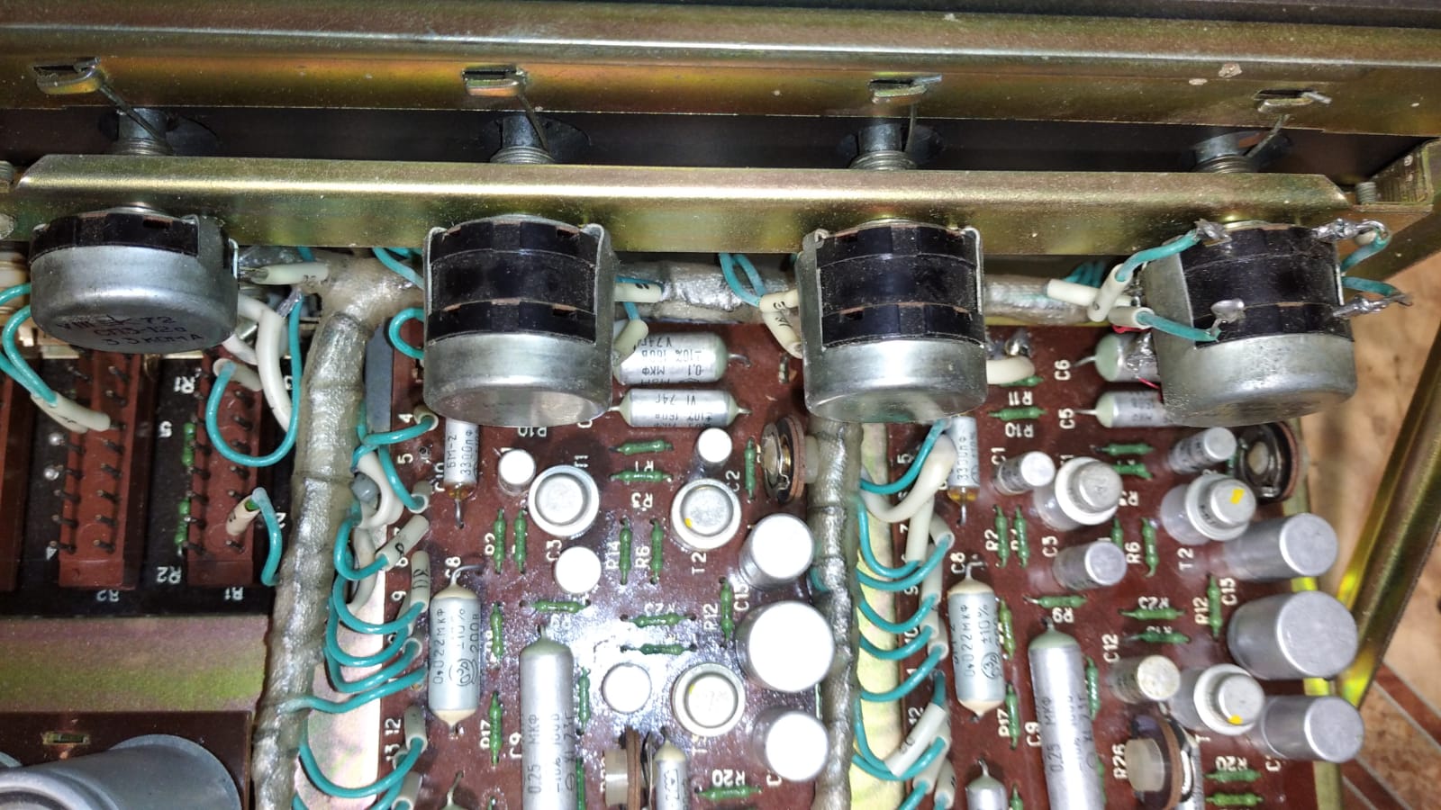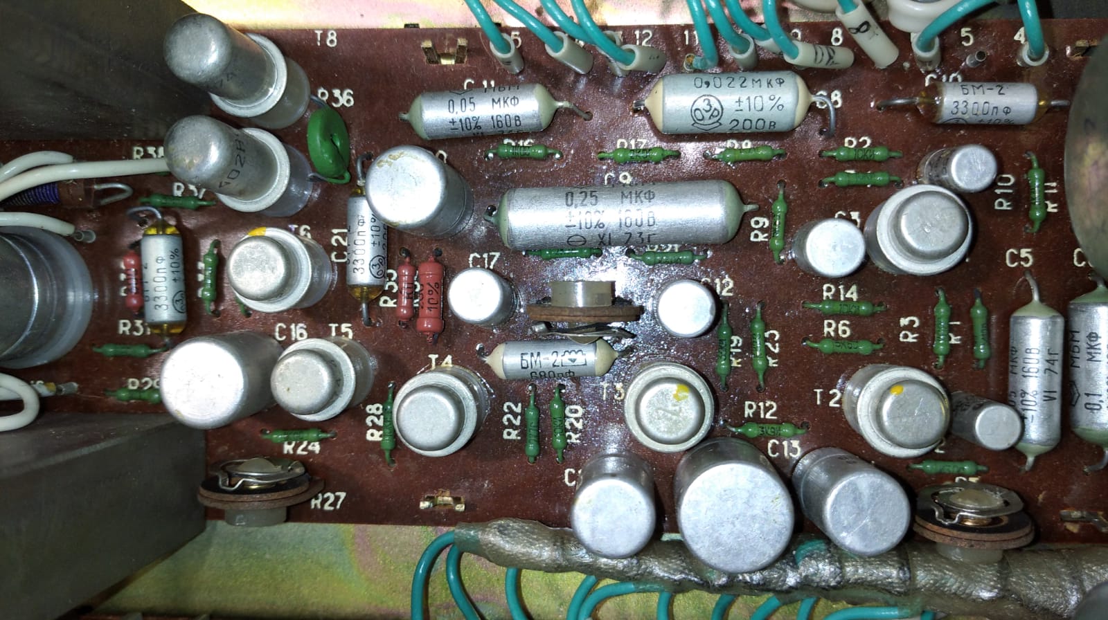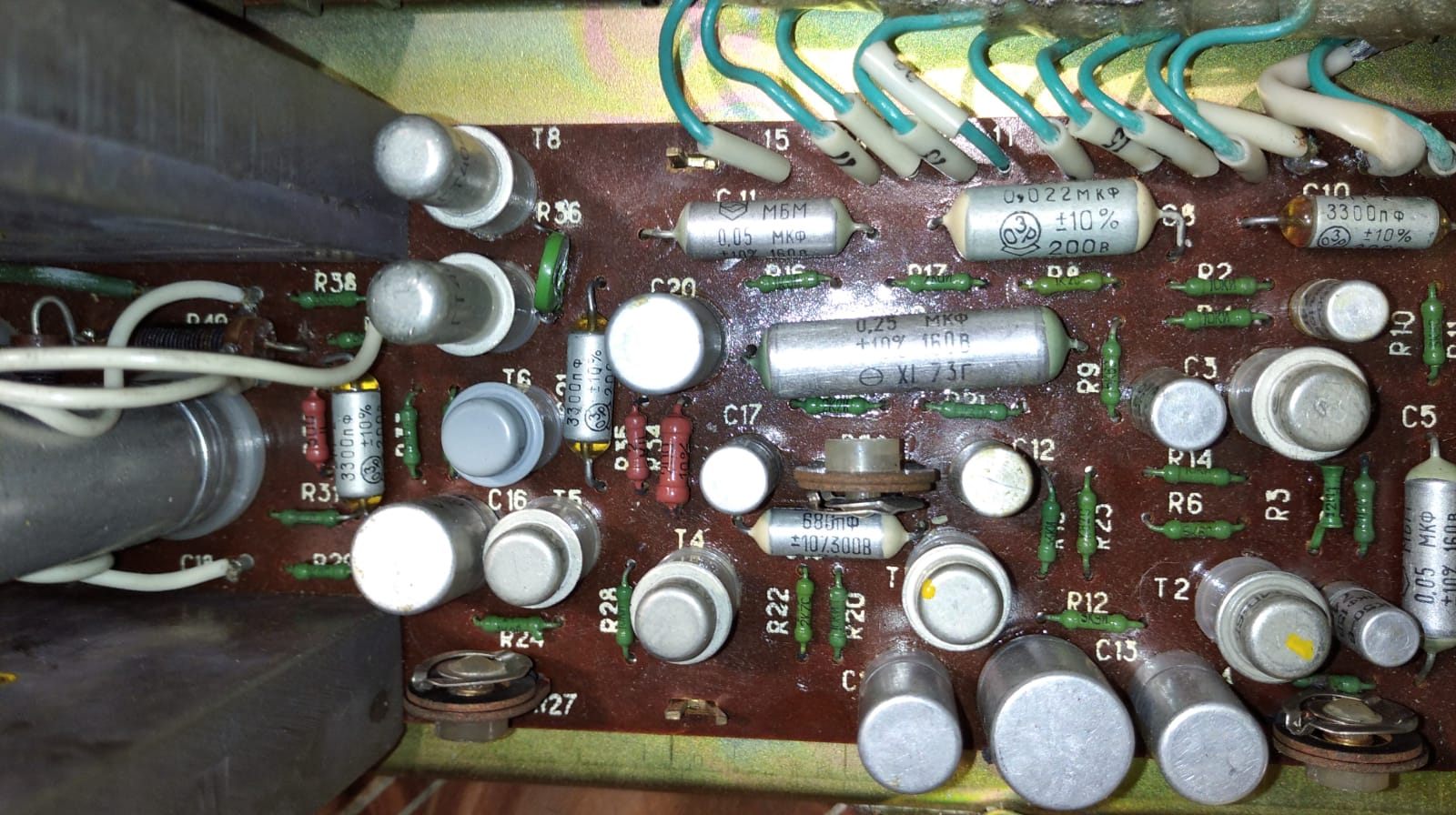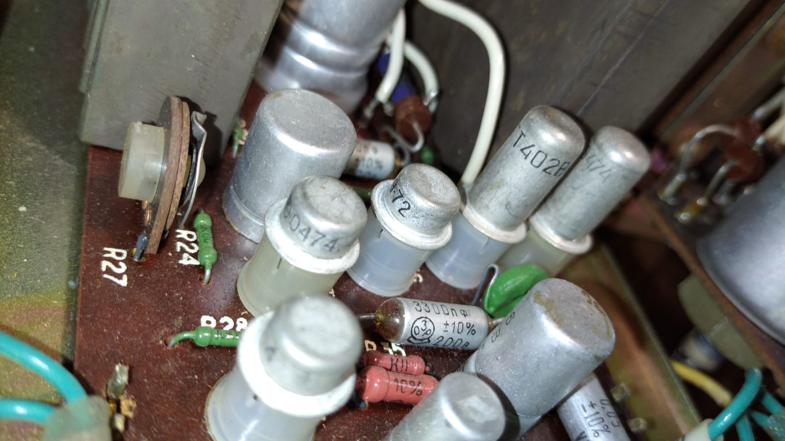 В первые каскады смело ставить кремний (если не нужна аутентичность). Сложнее будет с гт402/404 на 40 вольт. Меняйте на бд139/140 или подобные с корректировкой цепи смещения. Ревизия всех регуляторов и переключателей.