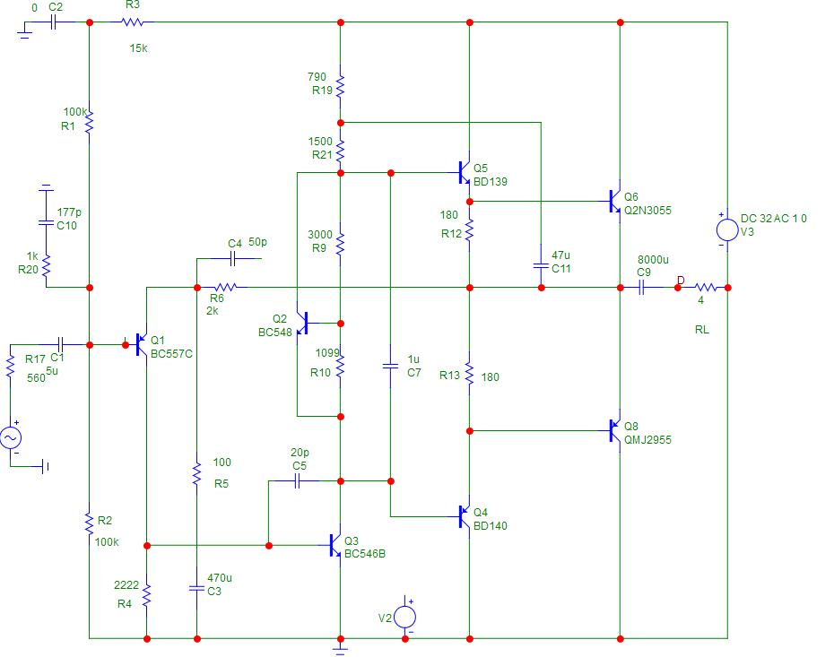 Это квази или комплиментар на выходе?туда надо 5198/1941 на выход и будет классный звук,ну и остальные транзюки сменить ,резистор в коллекторе первого каскада уменьшить до 560ом и двухполюсную коррекцию