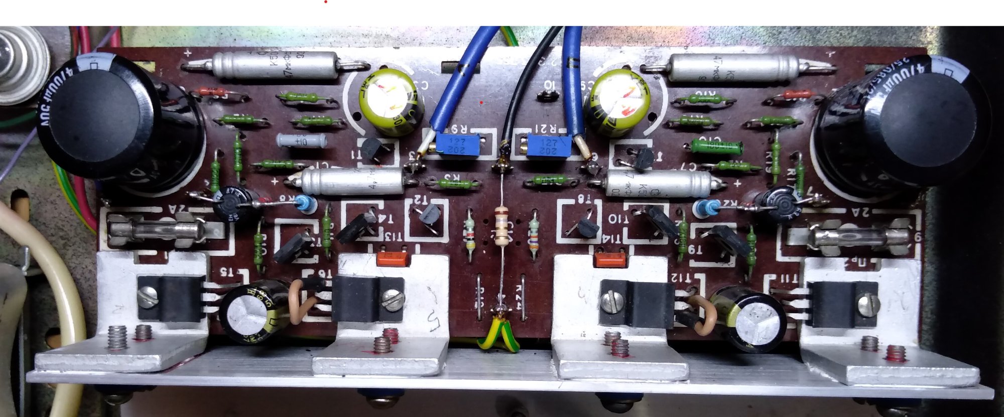 зачем сюда мощные транзисторы ? три пары кт850/851 или импортных аналогов без всякого подбора и радиатор типа пластины 3-5 мм во всю заднюю стенку