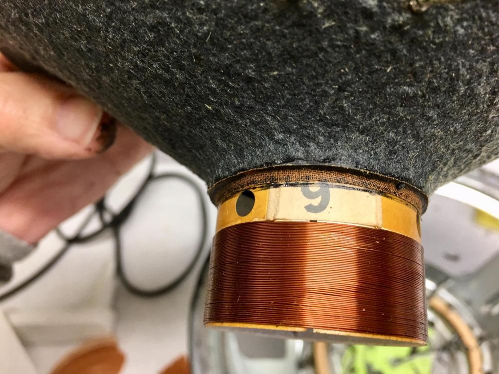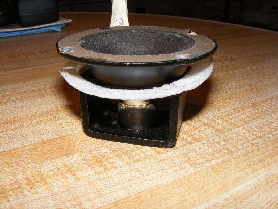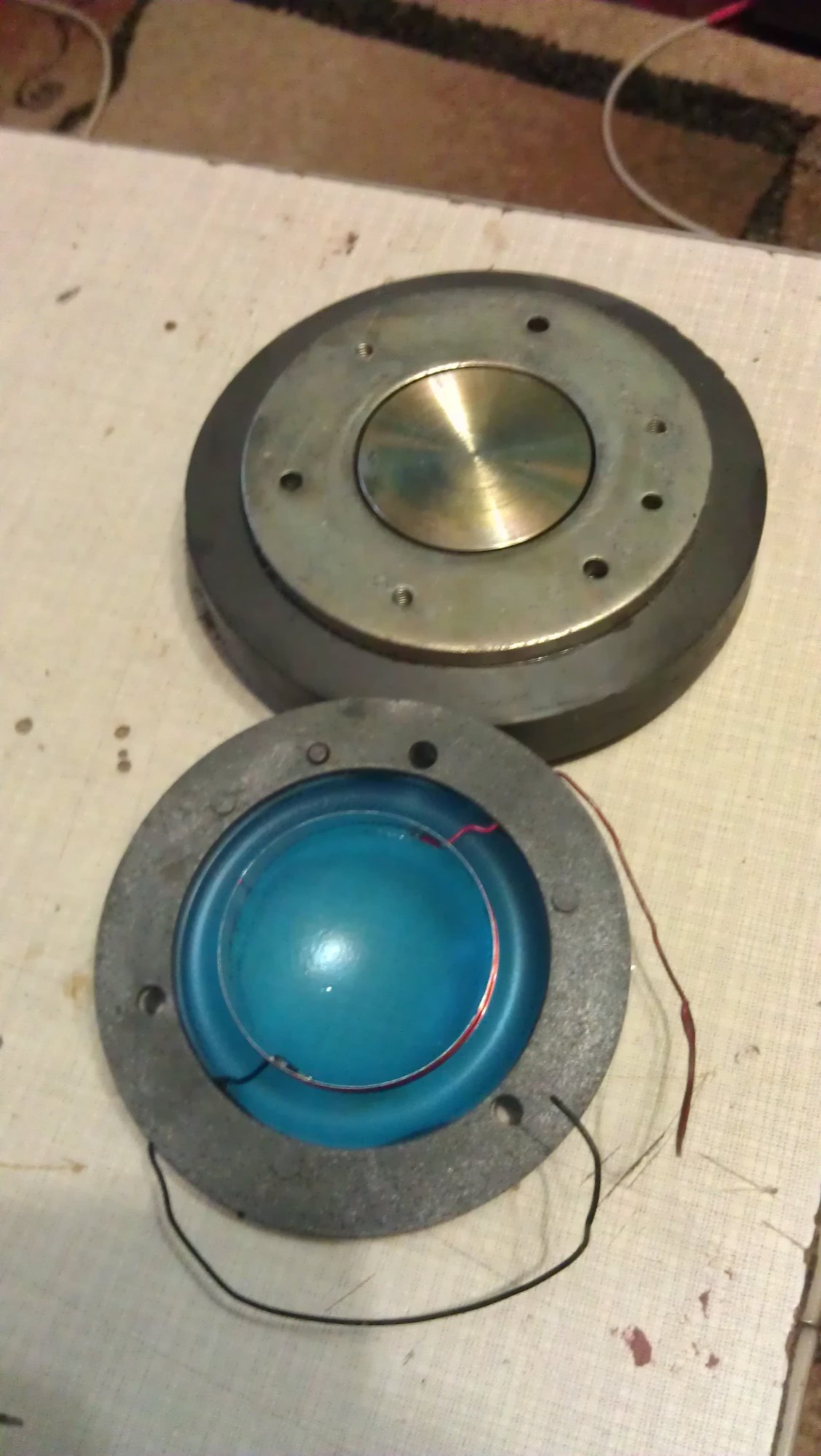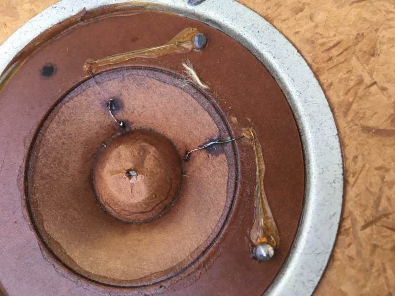 Динамики мне попались незадолго до этого в так себе состоянии и дёшево. Я решил умощнить катушку, намотать в 3 слоя, но выросший вес компенсировать облегчив диффузор и подвес. Конечно с высоты нынешнего опыта понятно что смысла в увеличении катушки нет, силы мотора и так хватает, но что сделано...