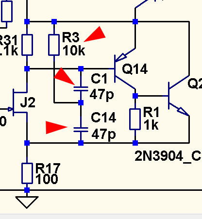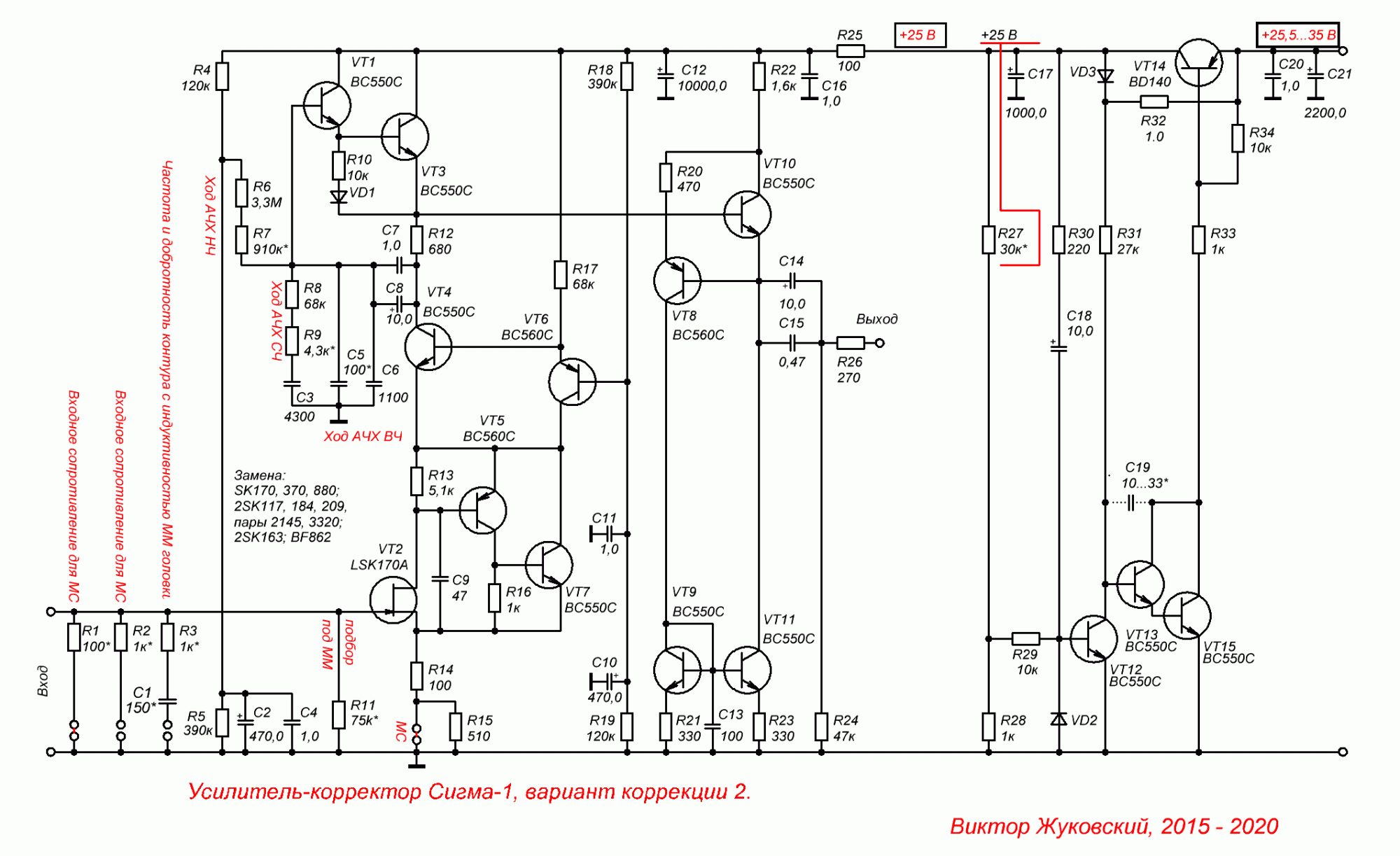 3. Т-коррекция R16С6С9 оптимизирована с уменьшениям искажений на ВЧ за счёт повышения петлевого усиления в тройке J1Т3Т16.