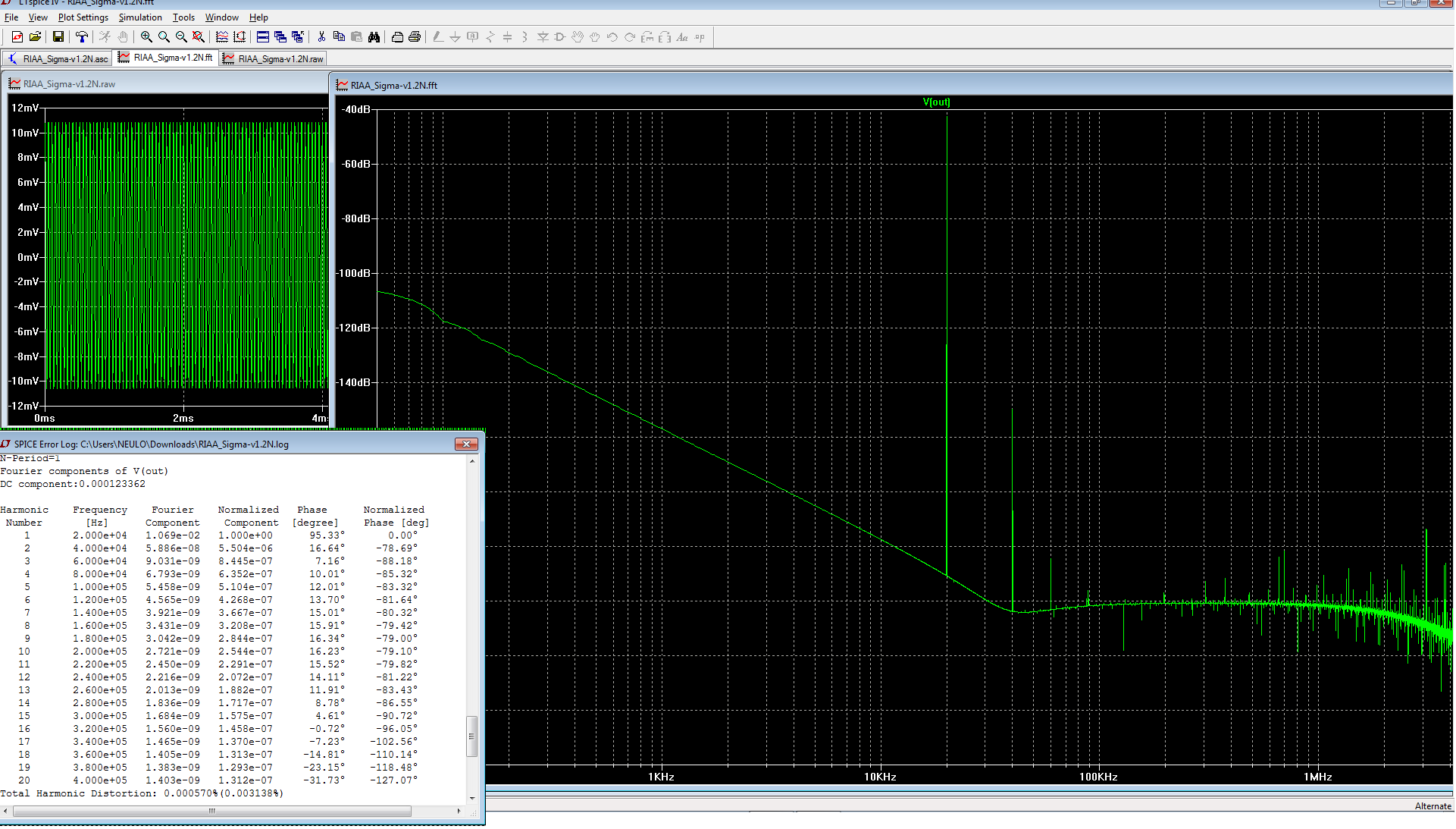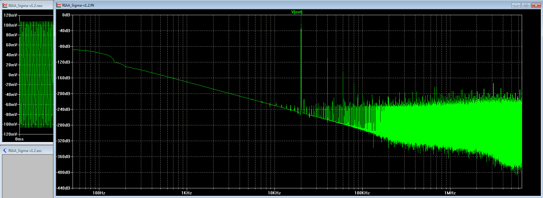 Понравилось то, что спад продолжается и выше частоты, где К.У.==1, в корректорах с RIAA-цепью в петле ООС такое бывает только при выносе одного из полюсов в пассивную RC-цепочку.
