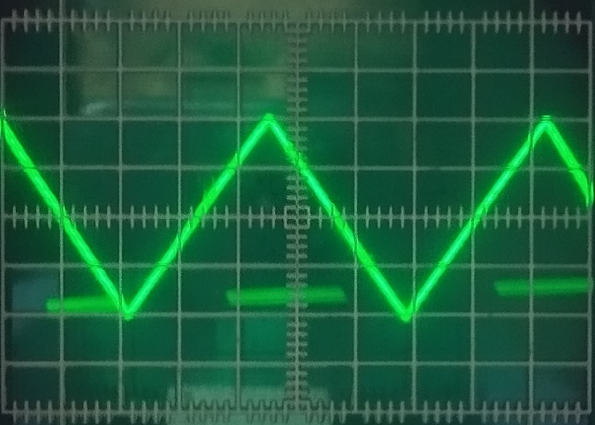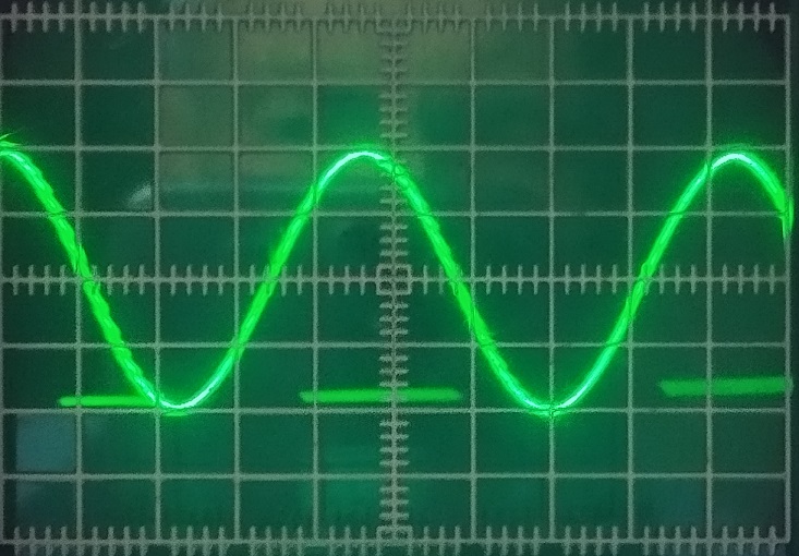 Фото слева на право: синус. 1 кГц, треугольник 1 кГц, Меандр 1 кГц.