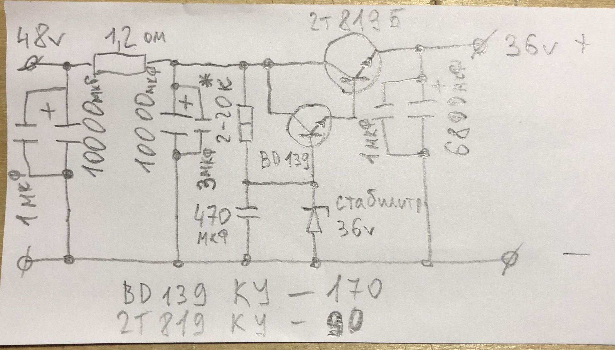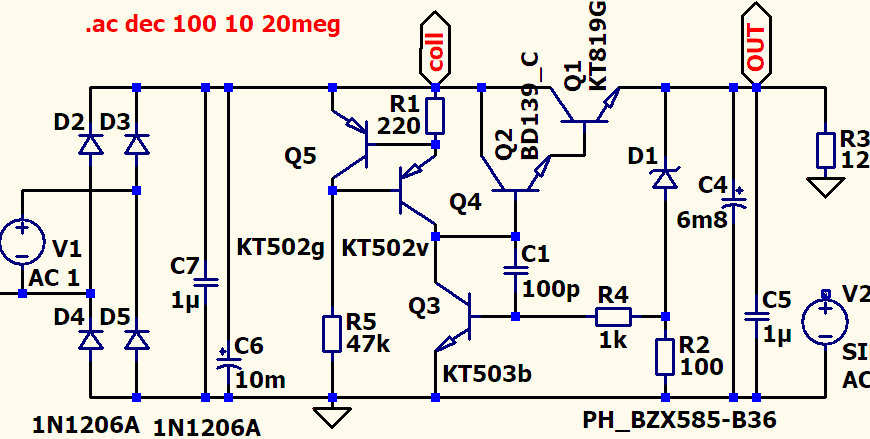 Вот мой стаб, для кремниевого худа, в германиевом худе от АБ такой же, только на pnp германиевых, рисовал по памяти, вроде не ошибся.