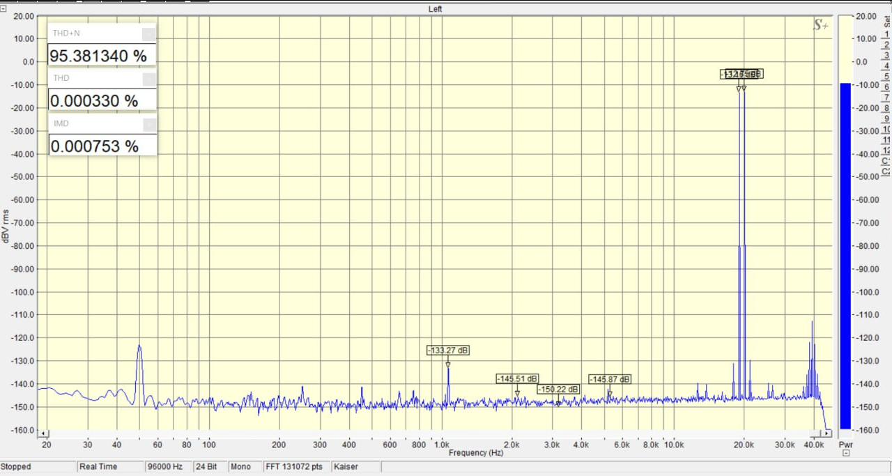 Несмотря на удаление входных конденсаторов, подавление не ниже 74 дБ в звуковом диапазоне.