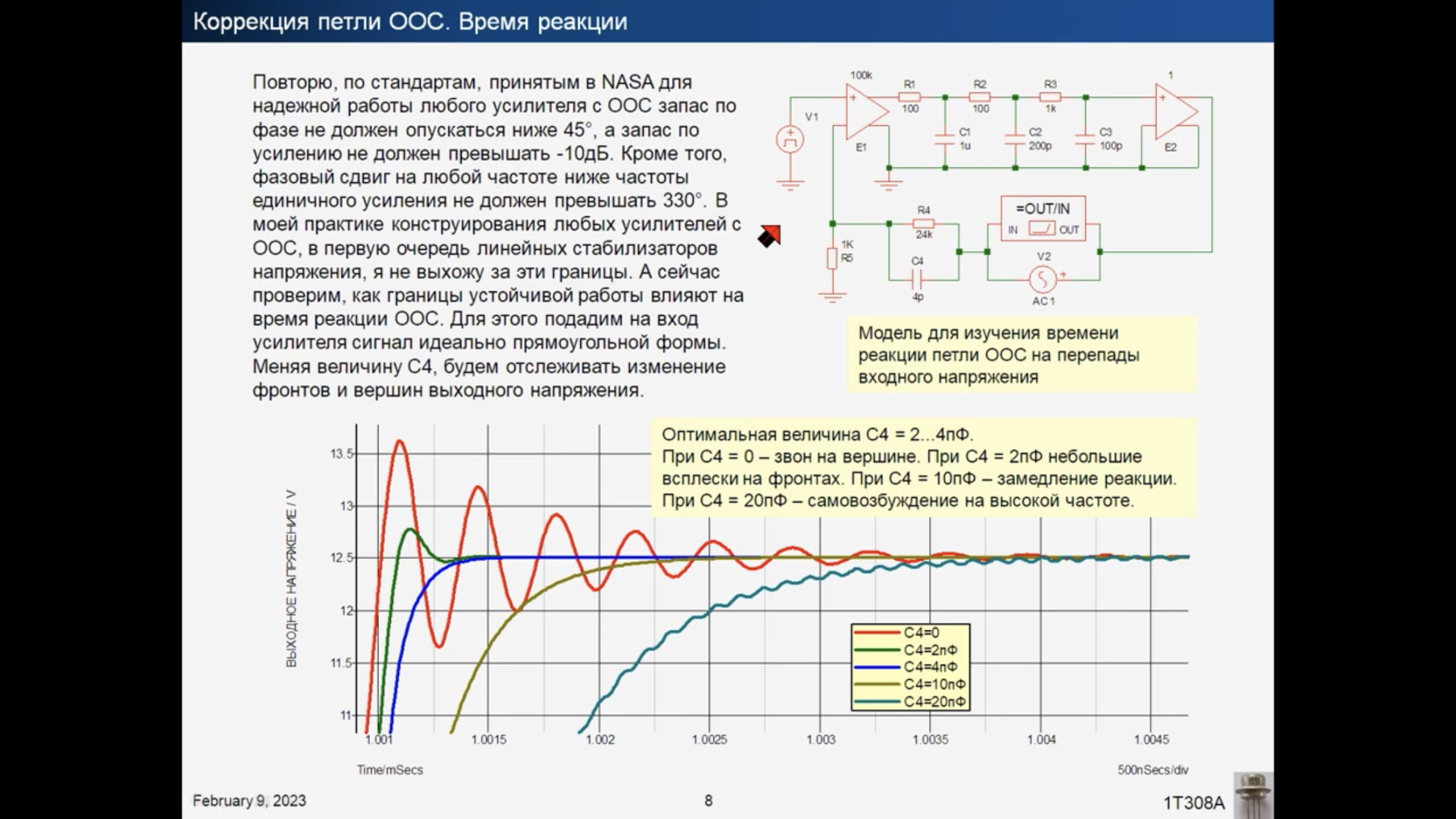 И ещё, на картинке из видео амплитуда 12.5 В и якобы без конденсатора в оос звон на фронтах достигает 2 Вольта.