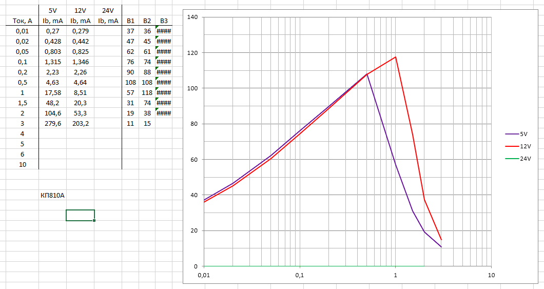 Заодно попробовал КП810А, на 24В не стал проверять, явно ключевой