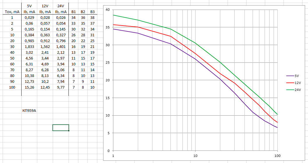 и КП959А, график усиления похож на КП958А, только бета маленькая