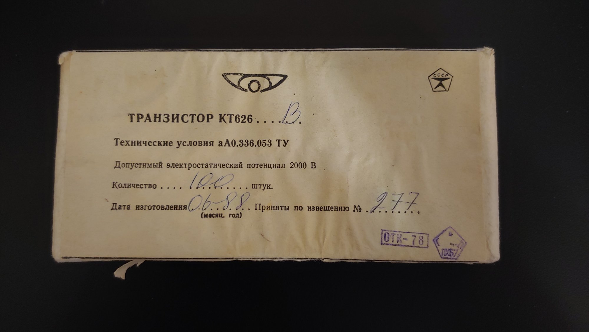 Перебрал целую коробку новых кт626в 1988го года. На удивление, из 106шт, только два были с утечкой. Эти транзисторы относительно линейны только с малым усилением, с hfe 40-55 и таких, на целую коробку, ~10шт.