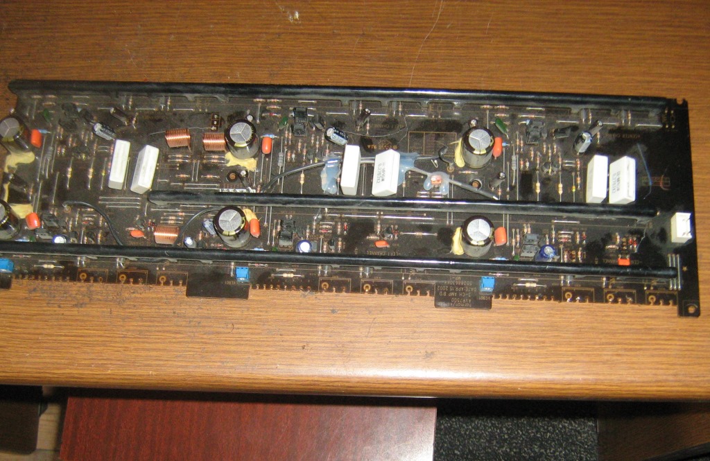 Усилитель HARMAN /KARDON, 2002г, убитый насмерть, и механически тоже. Там стояли 2SC5200 и 2SA1943, по шесть того другого, и еще на два радиатора. Резисторы 6 шт 0,27 ома, и проволочные