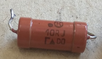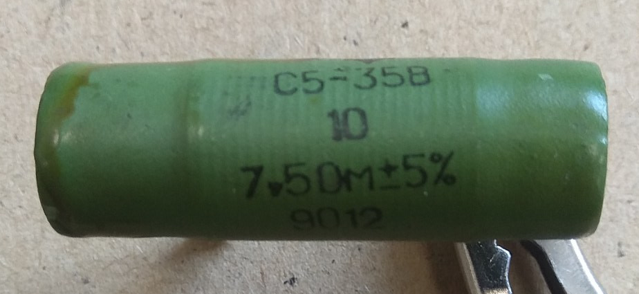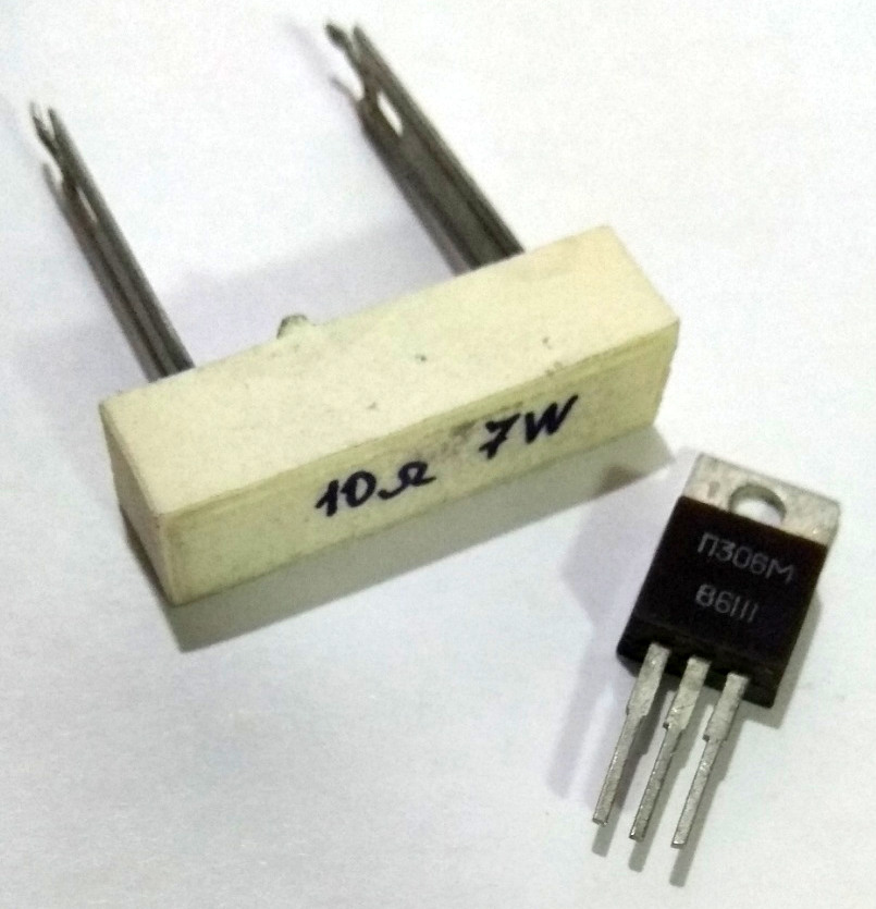 И что меня удивило, проволочный керамический резистор 10 Ом 7 Вт из телевизора, корпус 35-10-10 мм, транзистор в корпусе ТО-220 для габарита