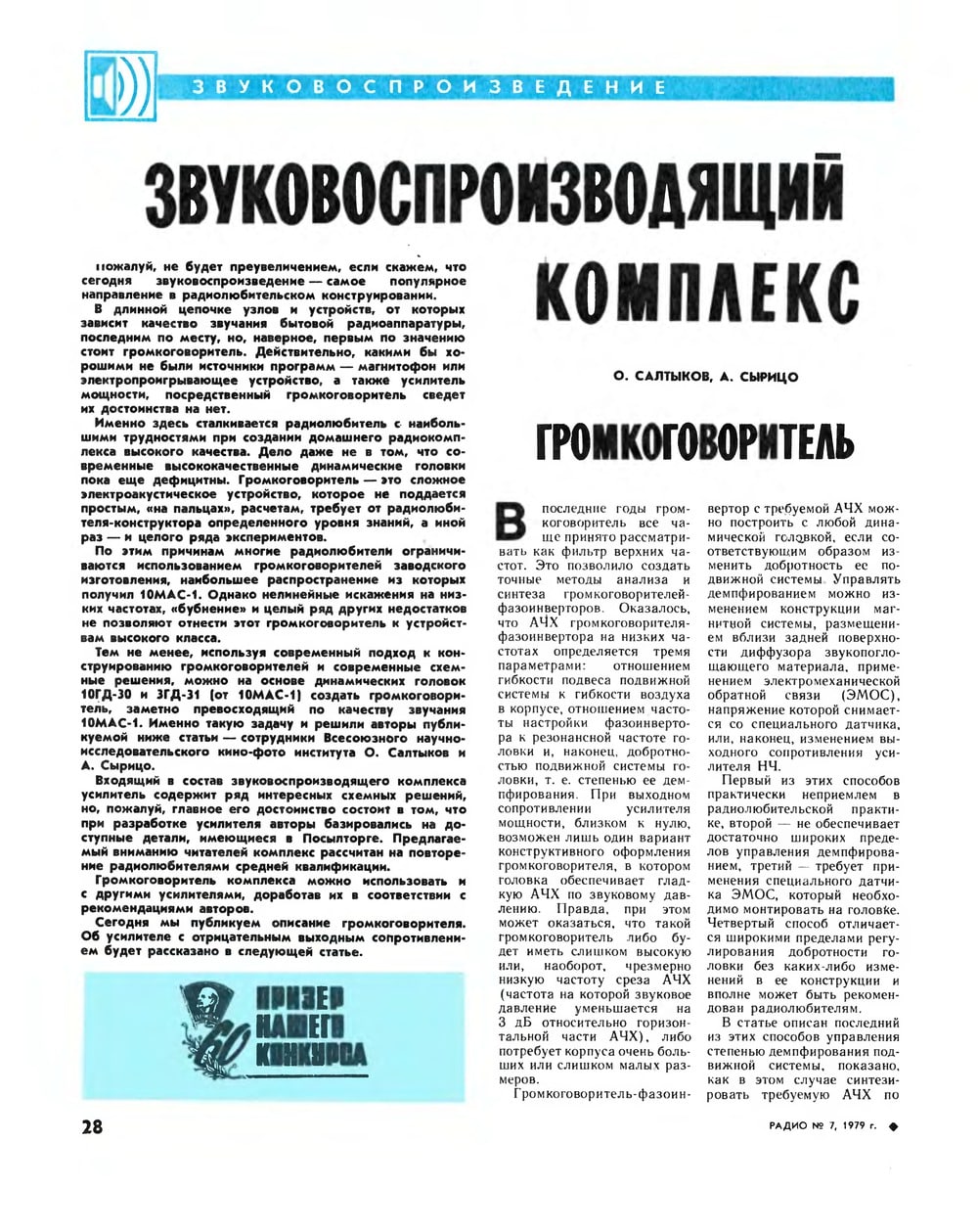Не будет преувеличением, если сказать, что звуковоспроизведение - самое популярное направление в радиолюбительском конструировании. В длинной цепочке узлов и устройств, от которых зависит качество звучания бытовом радиоаппаратуры, последним по месту, но, наверное, первым по значению стоит...